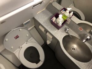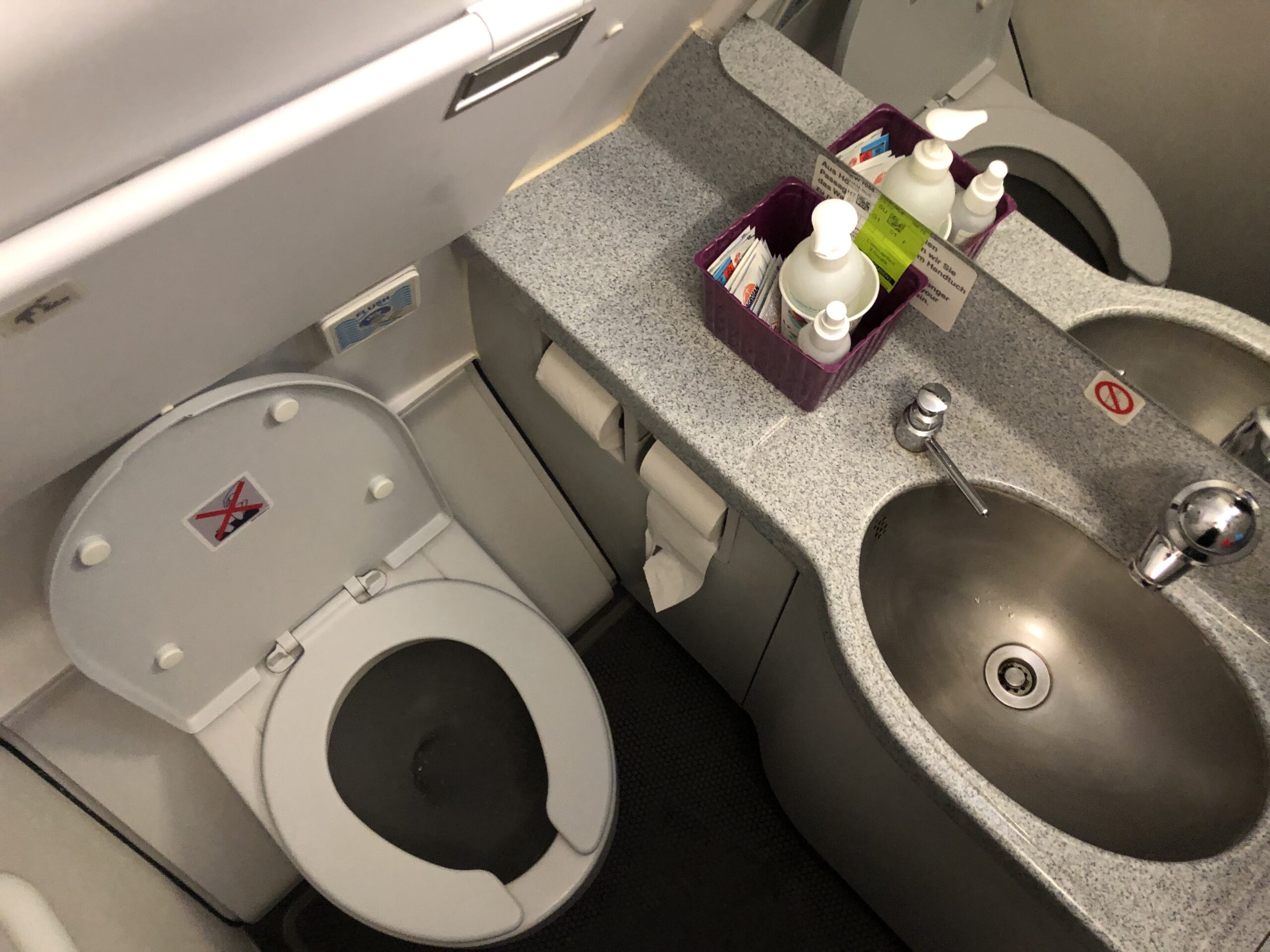 Die Kabine war ziemlich sauber und gut in Schuss. Sitze, Tische, Taschen und Waschräume waren Picobello.