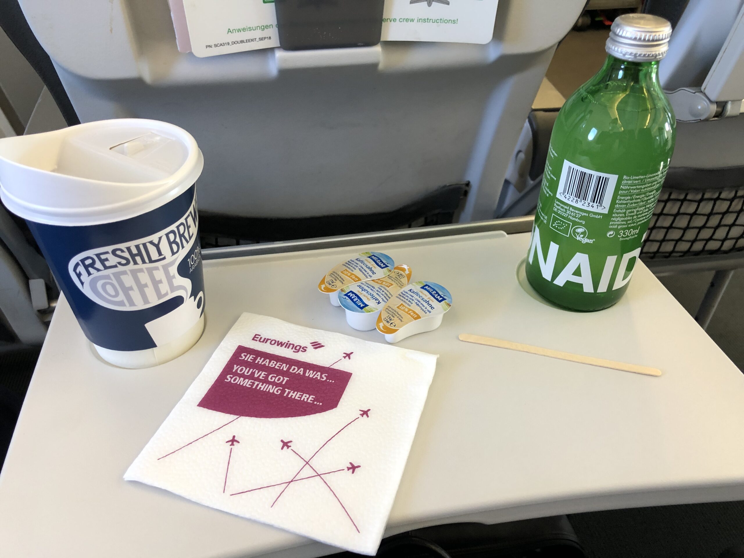 Alles in allem bekommt man in etwa das was auch Lufthansa bietet- ein Glas, Porzellantasse oder einen Vorhang gibt es bei Eurowings jedoch nicht.