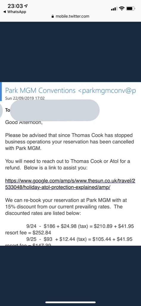 As a result, we are sorry to inform you that all holidays and flights provided by these companies have been cancelled and are no longer operating. All Thomas Cook’s retail shops have also closed.