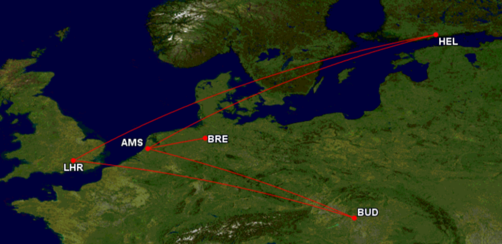 Die einzige Airline, die auch vernünftige Oneway-Tarife hatte, das war KLM. Allerdings stellte ich schnell fest, dass bei einem Gabelflug die Preise nur unwesentlich stiegen. So lag es nah, von Bremen über Amsterdam nach Helsinki und knapp eine Woche später von Budapest über Amsterdam zurück nach Bremen zu fliegen. Das ganze für uns vier zum Preis von knapp 400 Euro.