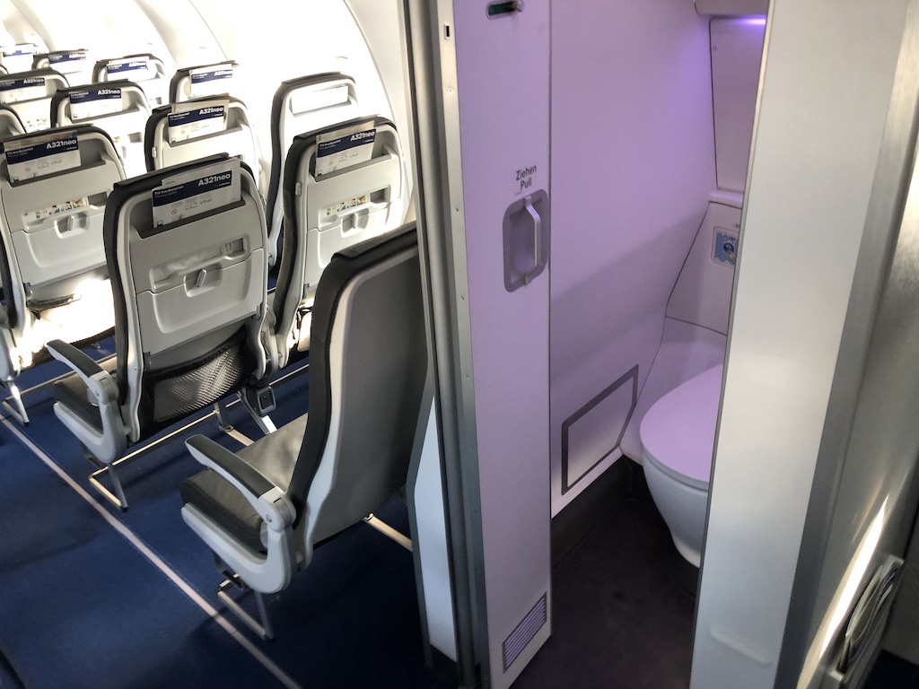 Zurück zu unseren Geräuschen. Vor allem bei Sitzplätzen im hinteren Bereich der Kabine kann einem am Boden ein staubsaugerähnliches Geräusch auffallen. Das ist die Vakuumpumpe der Toilettenanlage. Während des Fluges sorgt der geringere Außenluftdruck dafür, dass die Hinterlassenschaften eingesaugt werden. Diese werden in einem Tank gesammelt und nicht wie der Volksmund glaubt einfach abgeworfen. Um den nötigen Unterdruck zu erzeugen wird am Boden jedes Mal diese Pumpe aktiviert sobald der Spülknopf betätigt wird.