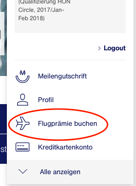 Geht einfach auf Miles-and-More.com und loggt Euch in Euren Account ein und wählt den Menüpunkt Flugprämie buchen.