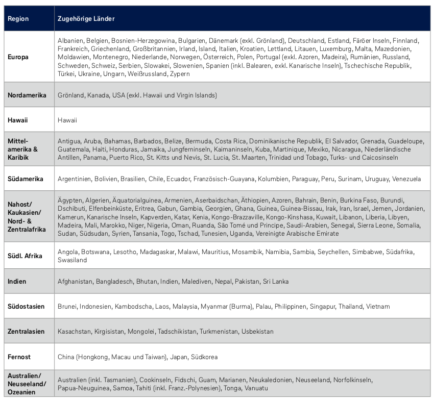 Miles&More unterteilt die Welt in verschiedene Zonen. Hierbei sollte man beachten, dass man immer nur die Zone des Start- und die Zone des Endpunktes berühren darf, da sonst der Meilenpreis meist drastisch steigt.