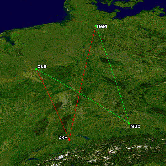 - Hamburg-Zürich-Düsseldorf ist nicht möglich