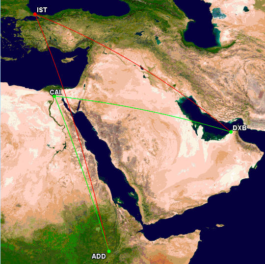 - Addis Abeba über Kairo nach Dubai ist möglich