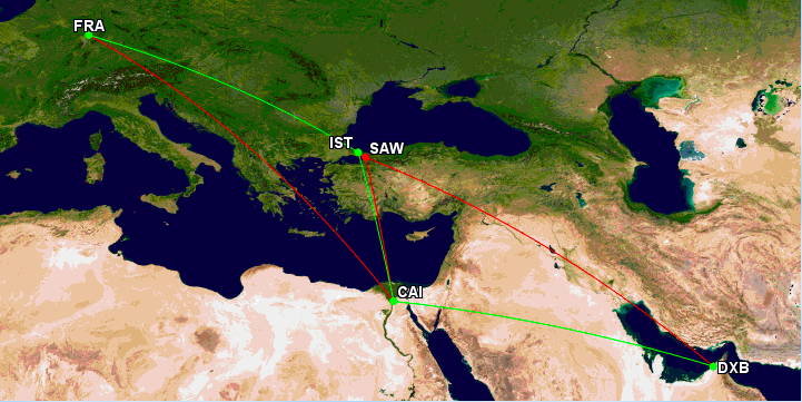 - Frankfurt- Kairo- Istanbul- Dubai ist nicht möglich