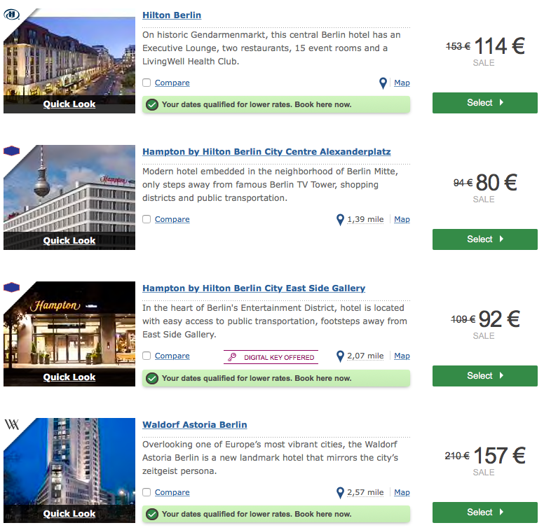 Beispiel Hilton Berlin: Rate war nie unter 135€ und hier 115€/Nacht.