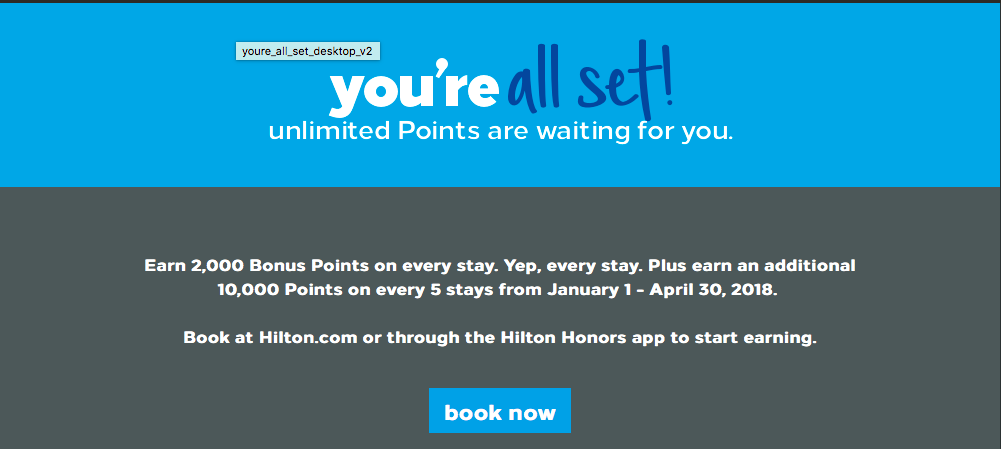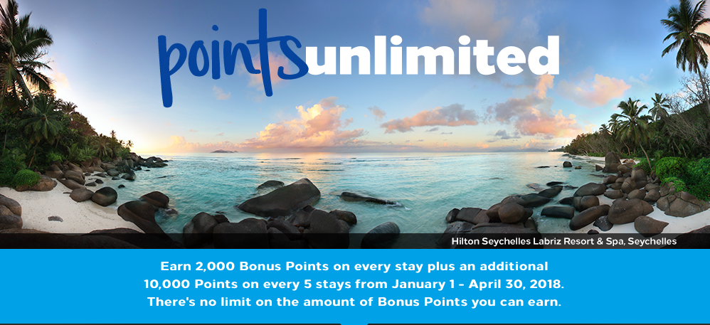 Grundsätzlich ist die neue Hilton Honors Promo sehr schnell erklärt. Für jeden Aufenthalt , also nicht pro Nacht, zwischen dem 01. Januar und 30. April 2018 erhaltet Ihr 2,000 Bonus Punkte. Nach fünf Aufenthalten, erhaltet Ihr nochmals 10.000 Punkte zusätzlich gutgeschrieben. Damit erhaltet Ihr im Mittel pro Aufenthalt 4.000 extra Hilton Punkte.