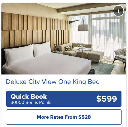 Unabhängig davon muss man immer ein wenig vergleichen- so ist der günstigste Tarif im neuen Conrad nur als nicht mehr stornierbare Rate mit Vorausbuchungsfrist zu haben. Die Bonuspunkte gibt es nur als flexiblen Tarif, was in unserem Beispiel einen Unterschied von ca. 70$ ausmacht: