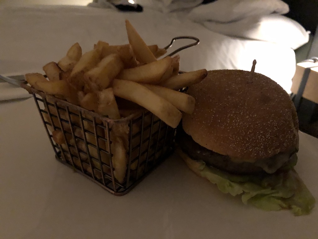 Als weitere Entschädigung gab es zusätzlich einen Essensgutschein, mit dem man einen Hauptgang sowie ein Getränk aus der Speisekarte im Restaurant oder auch im Zimmerservice bestellen konnte. Neben Burger, Pasta, Fisch und Schnitzel werden auch diverse Vor- und Nachspeisen offeriert.