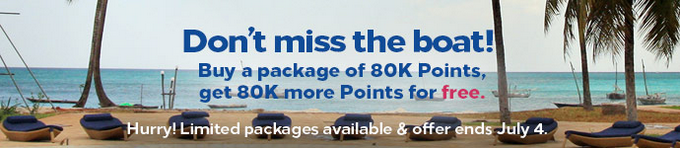 Das Hilton Honors Programm hat wieder eine sehr schöne Aktion, mit welcher man Hilton Punkte mit bis zu 100% Bonus kaufen kann. Dabei kann man zwei Pakete von 40.000 oder 80.000 Punkten mit je 100% Bonus kaufen, sodass man auf 80.000 oder 160.000 Punkte kommt.