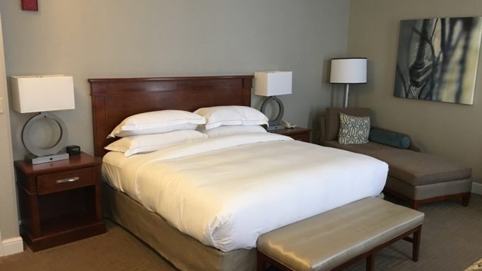 Dank meines Hilton Diamond Status erhielt ich einen kostenlosen late Check-Out bis 15 Uhr, sowie ein Upgrade auf ein Zimmer in einem höheren Stockwerk. Das Upgrade war zwar durchaus eine höhere Zimmerkategorie und das Zimmer wäre so 40 US$ teurer, aber wirkliche Unterschiede, außer der Lage in einem höheren Stockwerk gibt es wohl nicht.