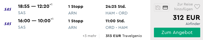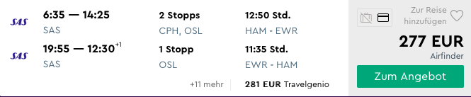 Hin- und Rückflüge in die USA für unter 300 Euro sind an sich schon günstig, allerdings findet man sie inzwischen immer öfter als Angebote mit Handgepäckbeschränkung. Dass SAS hier auch einen kostenlosen Koffer anbietet, ist bei diesem Preis schon sehr beachtlich, denn bei den üblichen 300 Euro Angeboten, muss man diesen für über 100 Euro dazu kaufen, was das Schnäppchen kaputt macht.