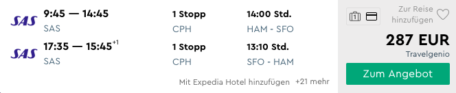 Habe Düsseldorf, Hamburg und Hannover nach SFO probiert und nichts in der Art gefunden…