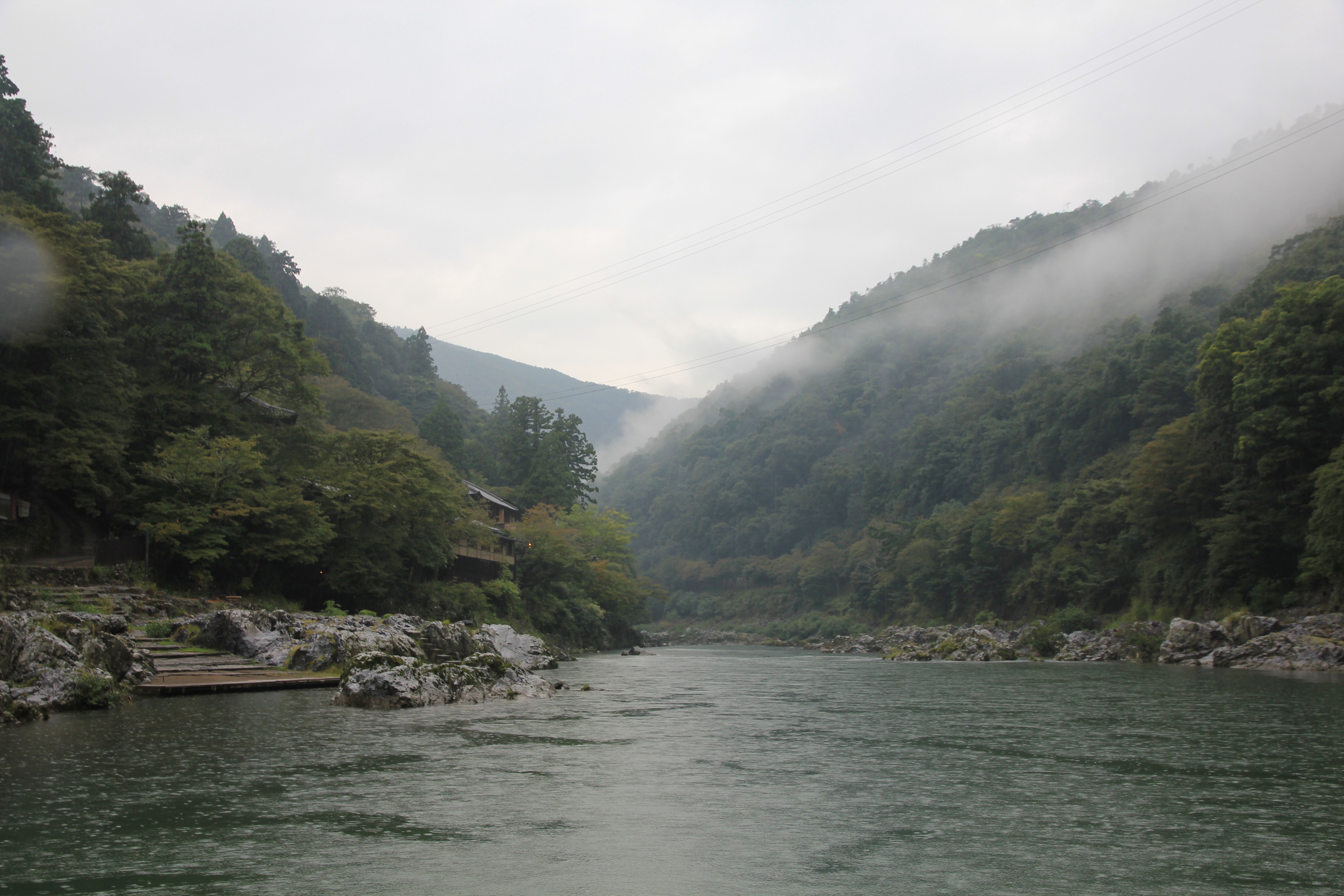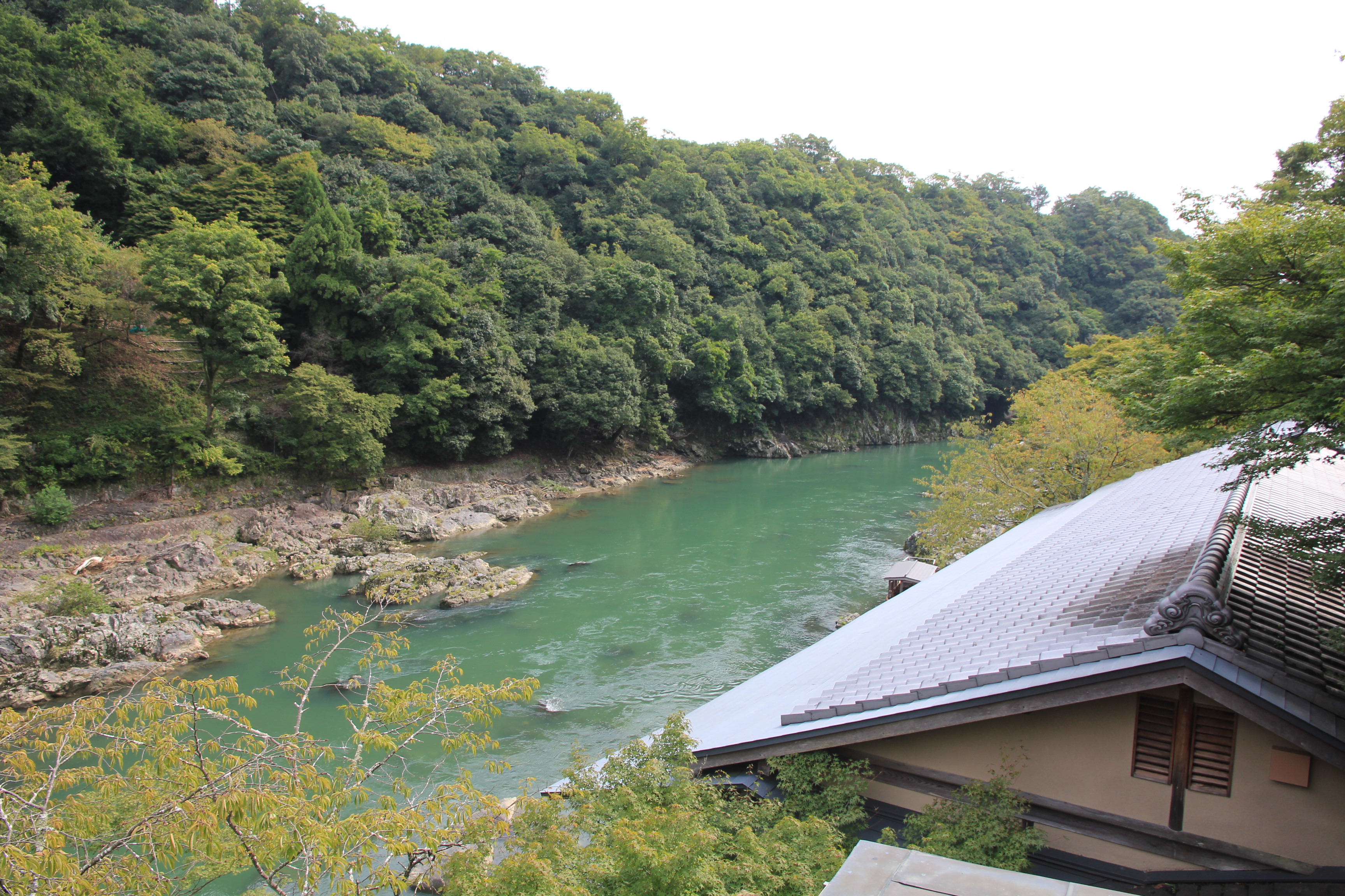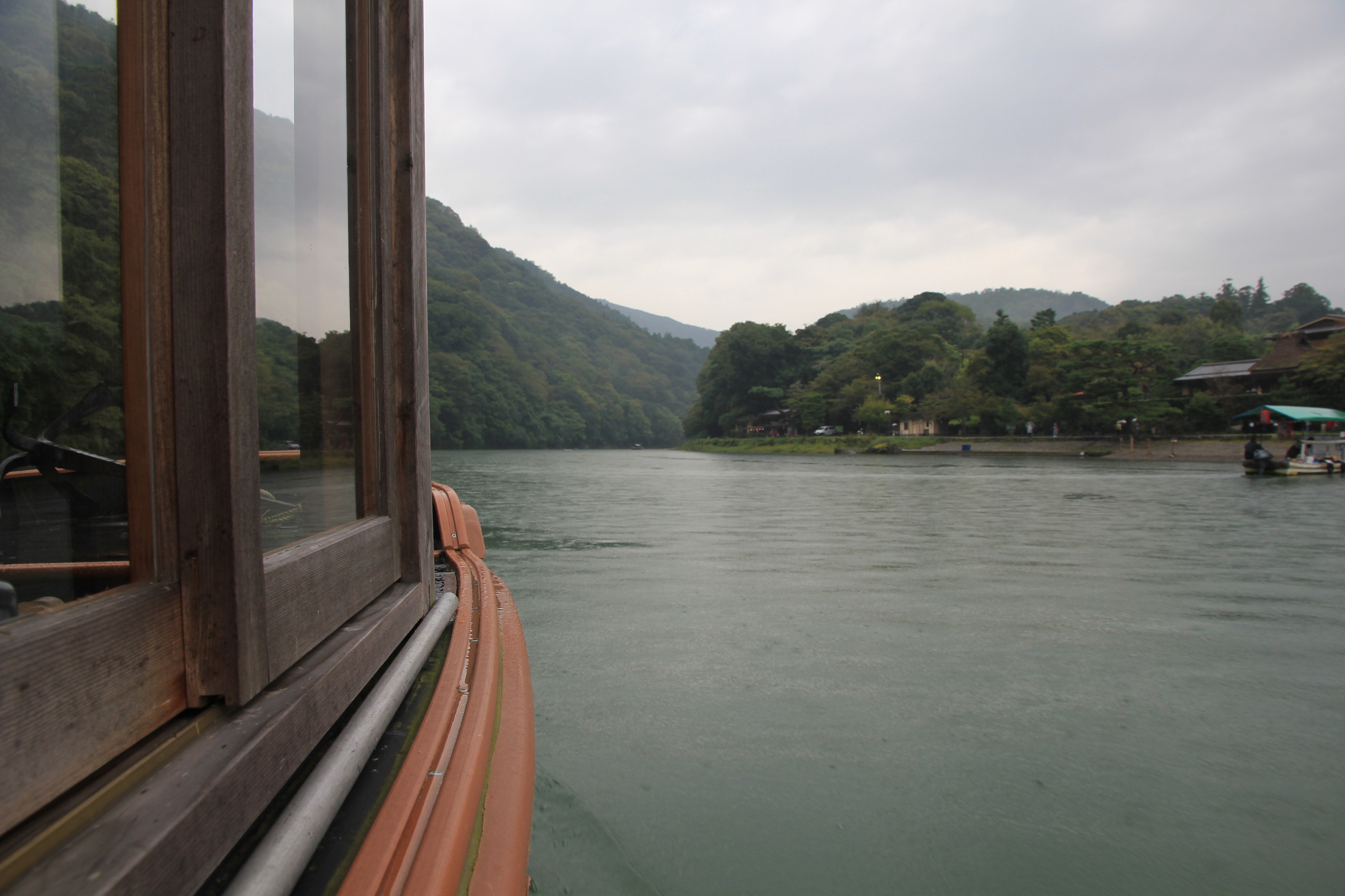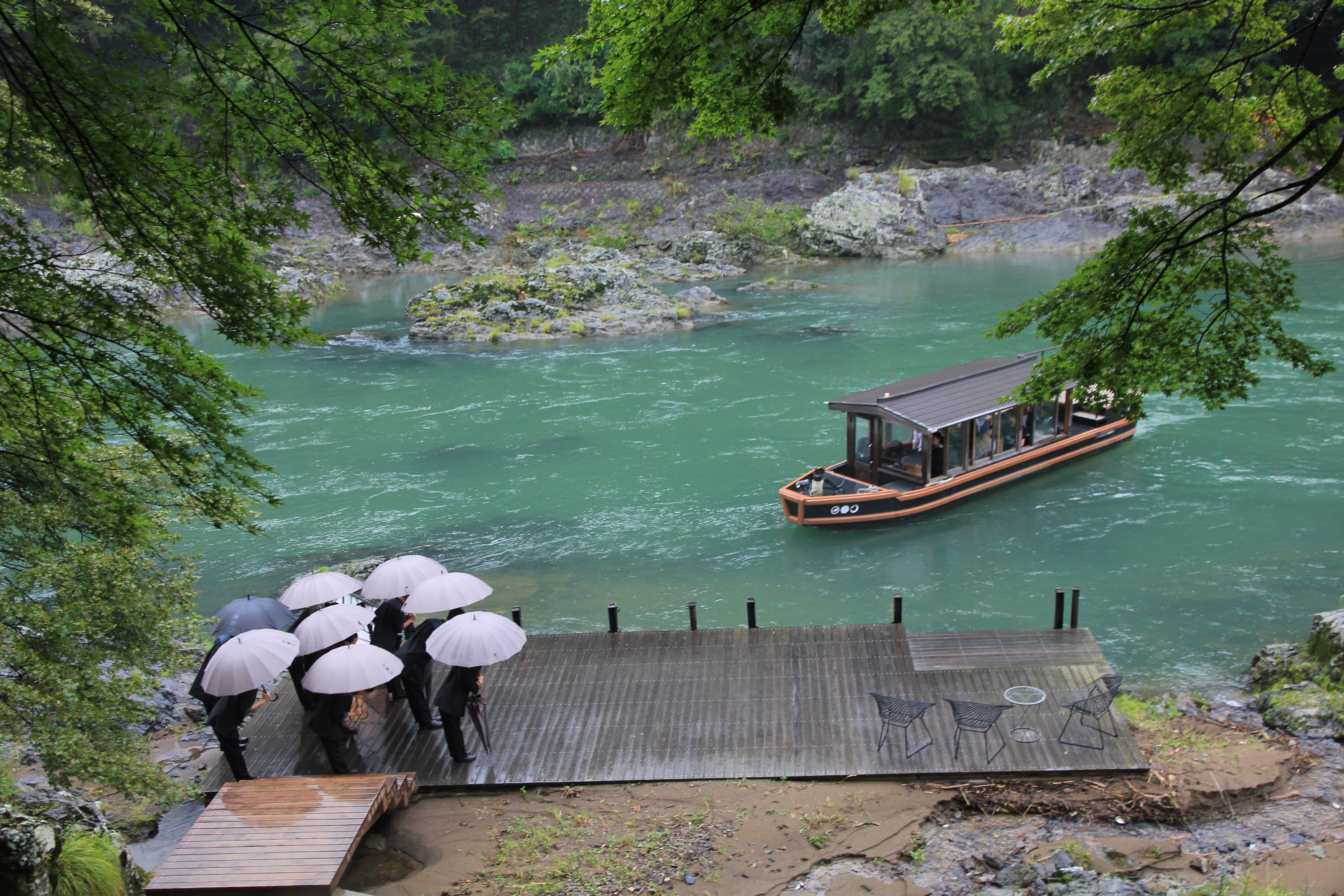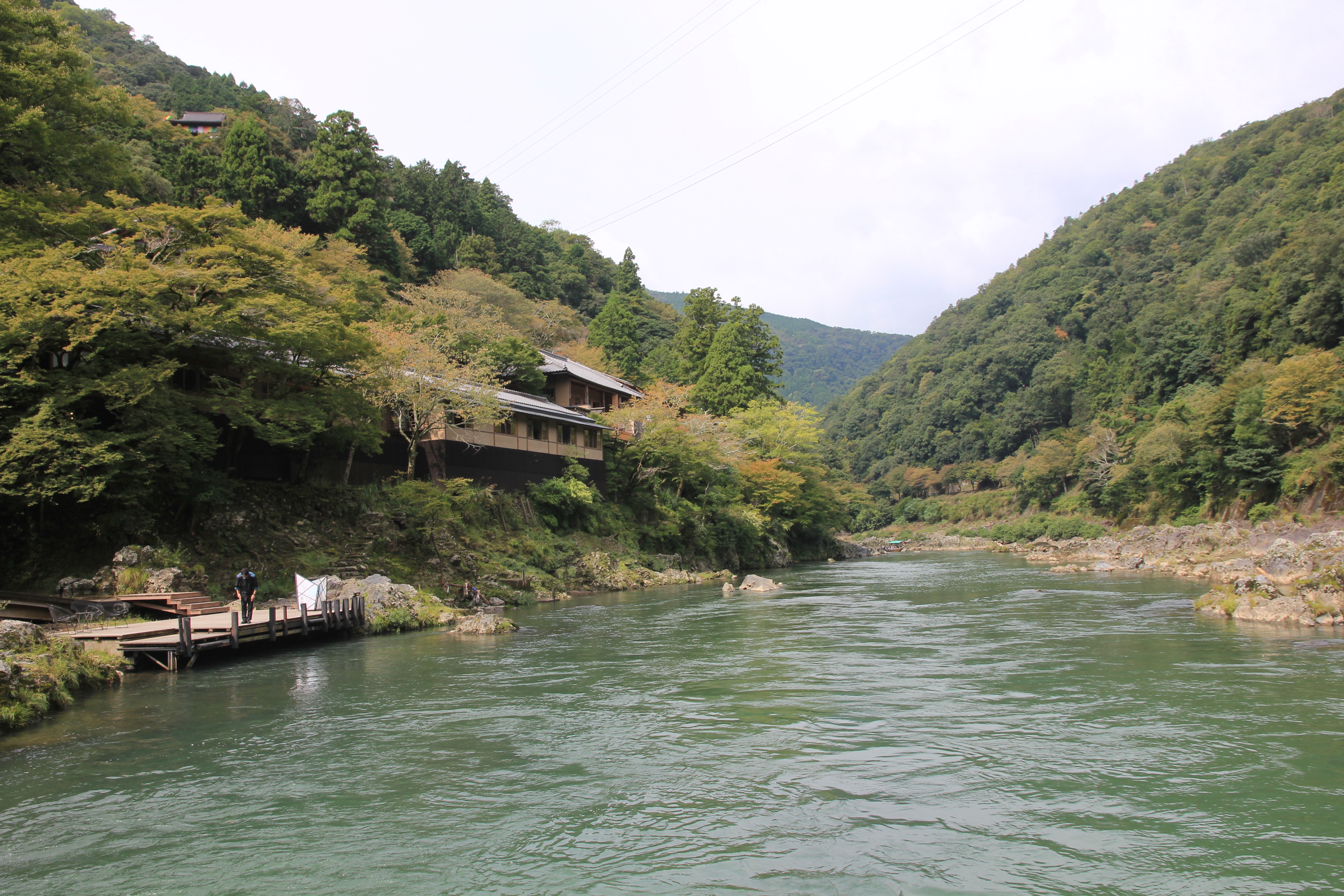 Nachdem ich am späten Vormittag ausgecheckt hatte, ging es für mich mit dem Shinkansen nach Kyoto. Für die gut 500 Kilometer braucht man mit dem japanischen Bullet Train nur gut 2 Stunden. Vom Bahnhof in Kyoto kann man entweder ein Taxi nehmen, das braucht dann knappe 30 Minuten, oder man fährt mit der Regionalbahn weiter. Letztere Option habe ich gewählt. Nach 10 Minuten Fußweg durch ein altes, historisches und entspanntes Viertel kam ich dann am Fluss an. Hier befindet sich das „Wartezimmer“ vom HOSHINOYA Kyoto. Man checkt hier nämlich ein, bevor man mit dem hoteleigenen Boot flussaufwärts zum Hotel gefahren wird. Nach circa 15 Minuten und einer wunderschönen Tour durch ein kleines Tal kommt man am Bootssteg des Hotels an.