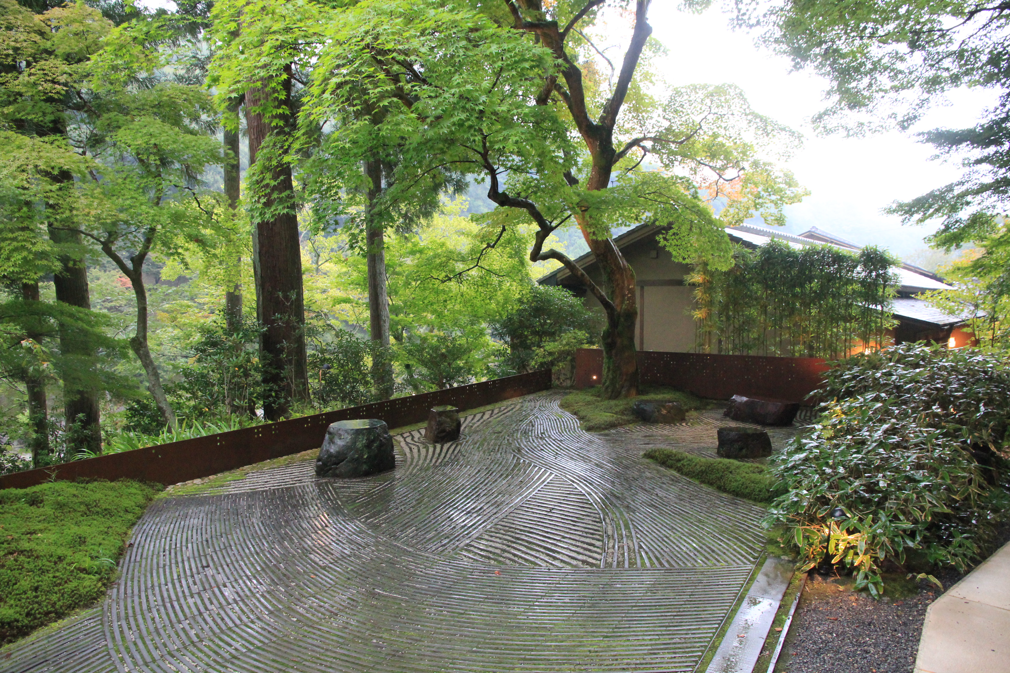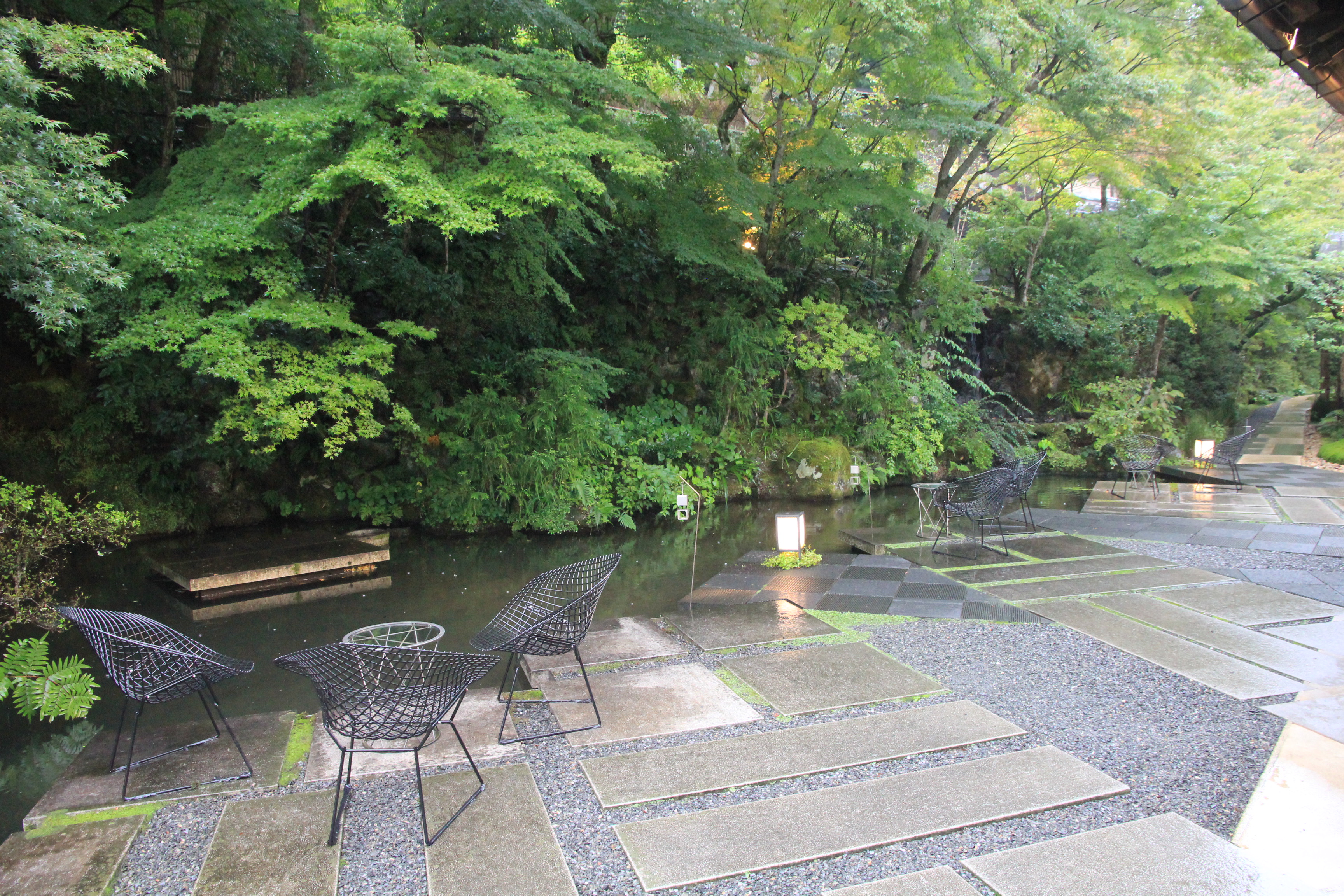 Im hinteren Bereich des HOSHINOYA Kyoto befindet sich noch ein kleiner japanischer Garten. Hier wird am Morgen Yoga und andere Entspannungskurse angeboten.