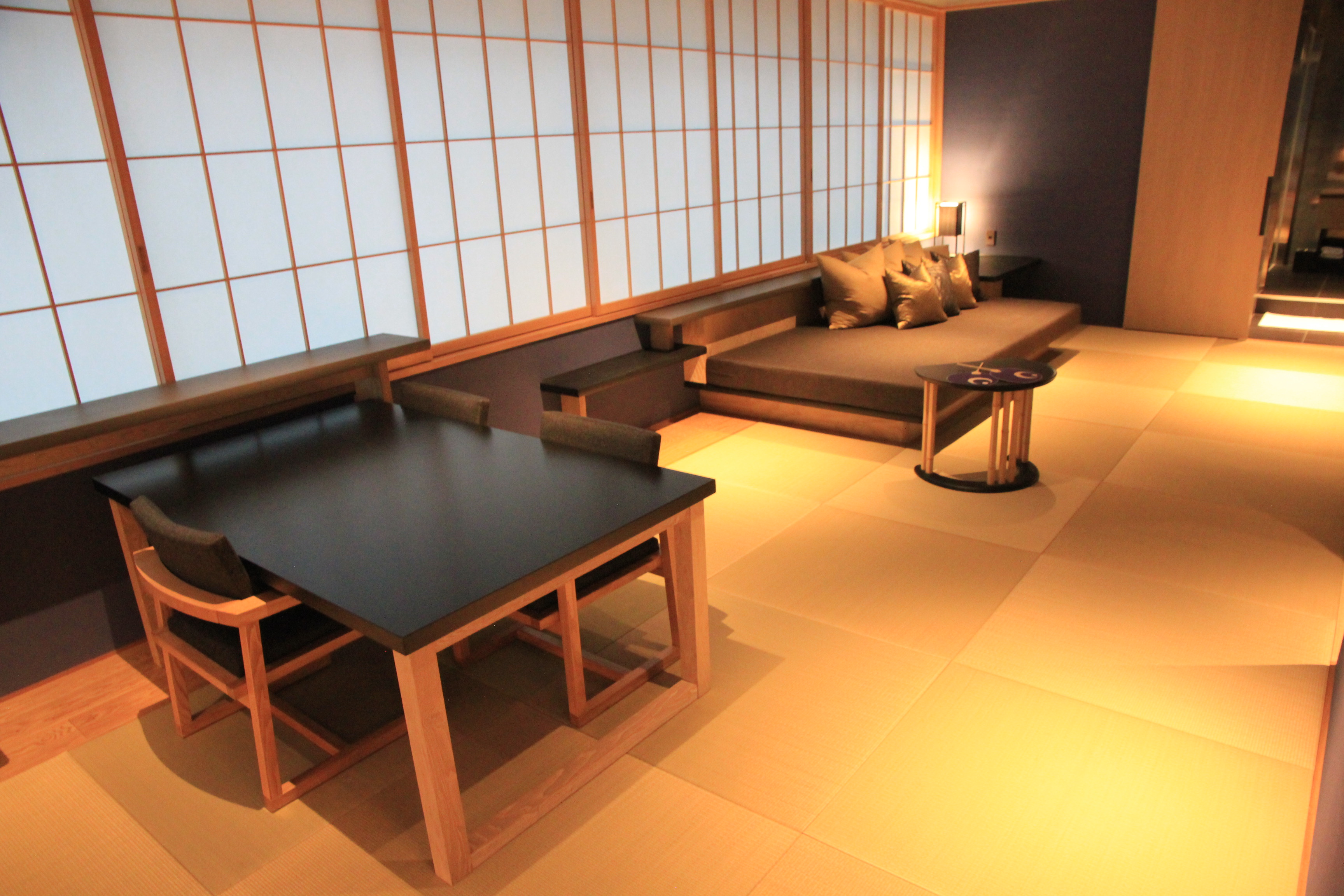 Dies klingt zunächst ungewöhnlich und befremdlich. Allerdings ist fast jeder Bereich im Hotel mit Tatami Matten ausgelegt. Diese Bambusmatten sind warm und weich, so dass auch die Damen keine kalten Füße bekommen.