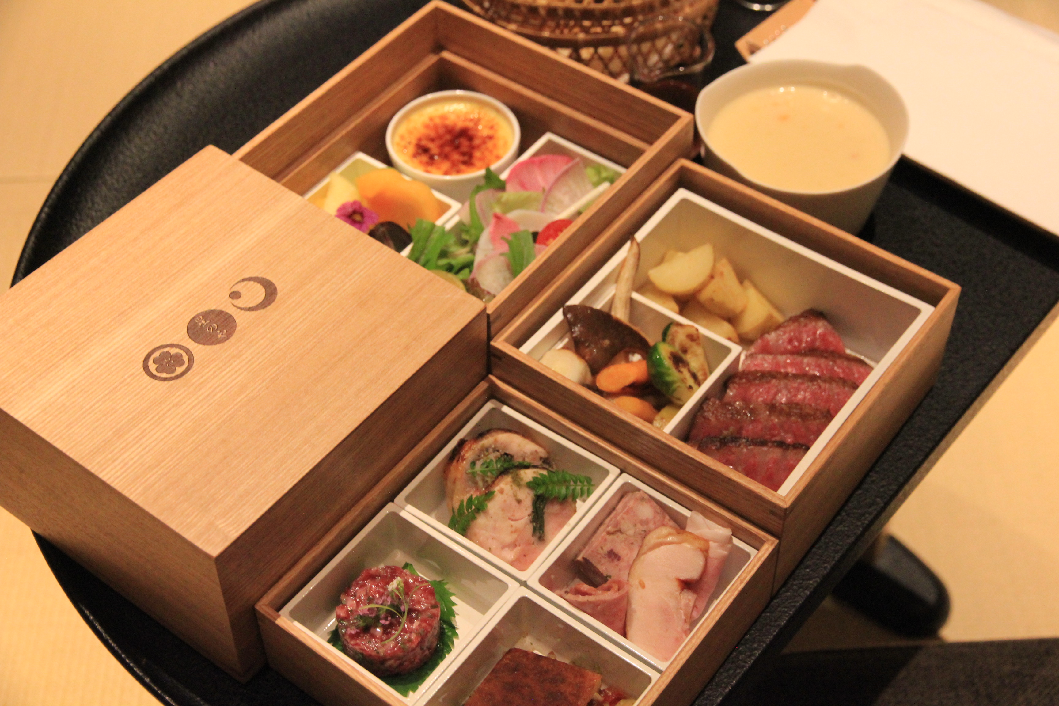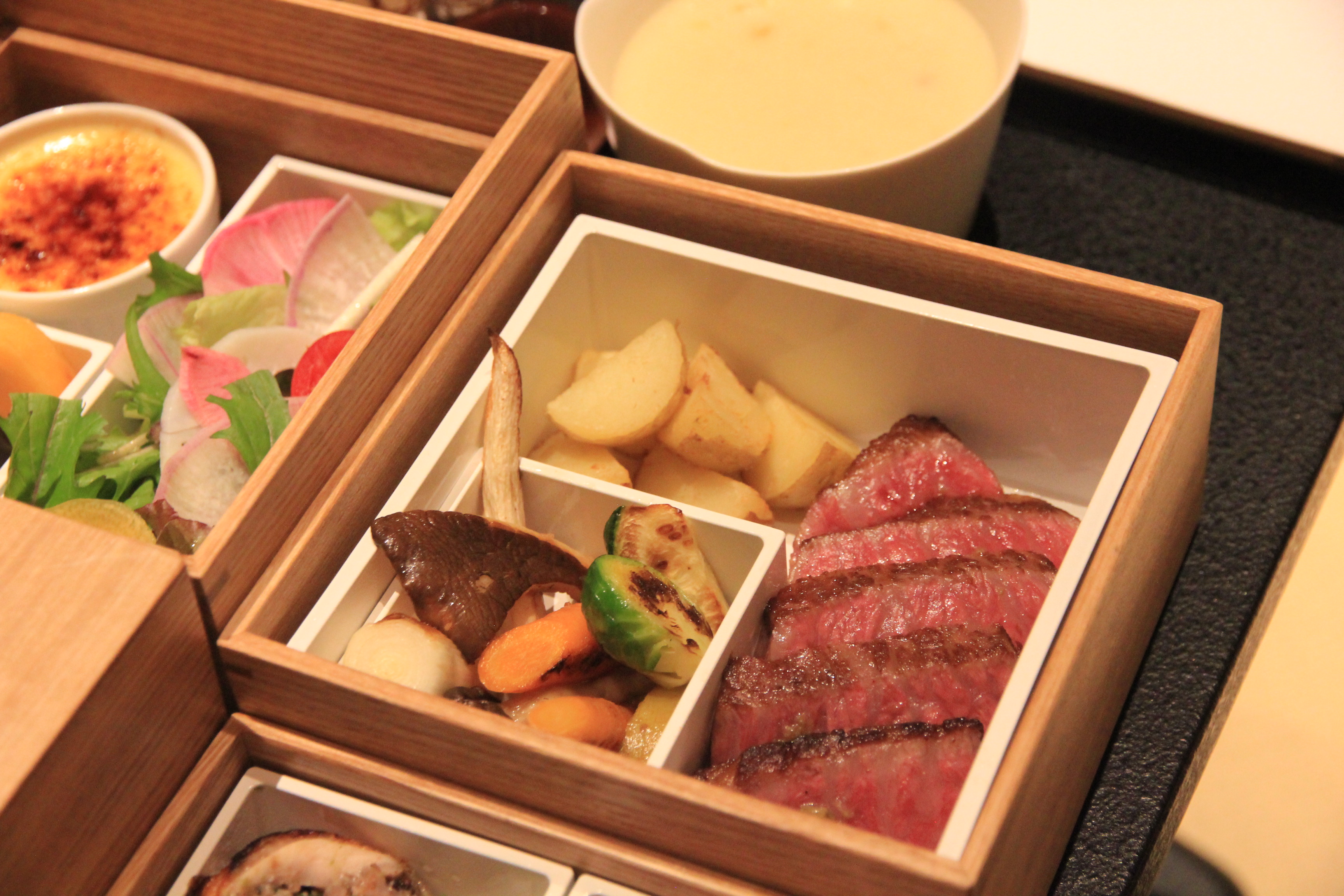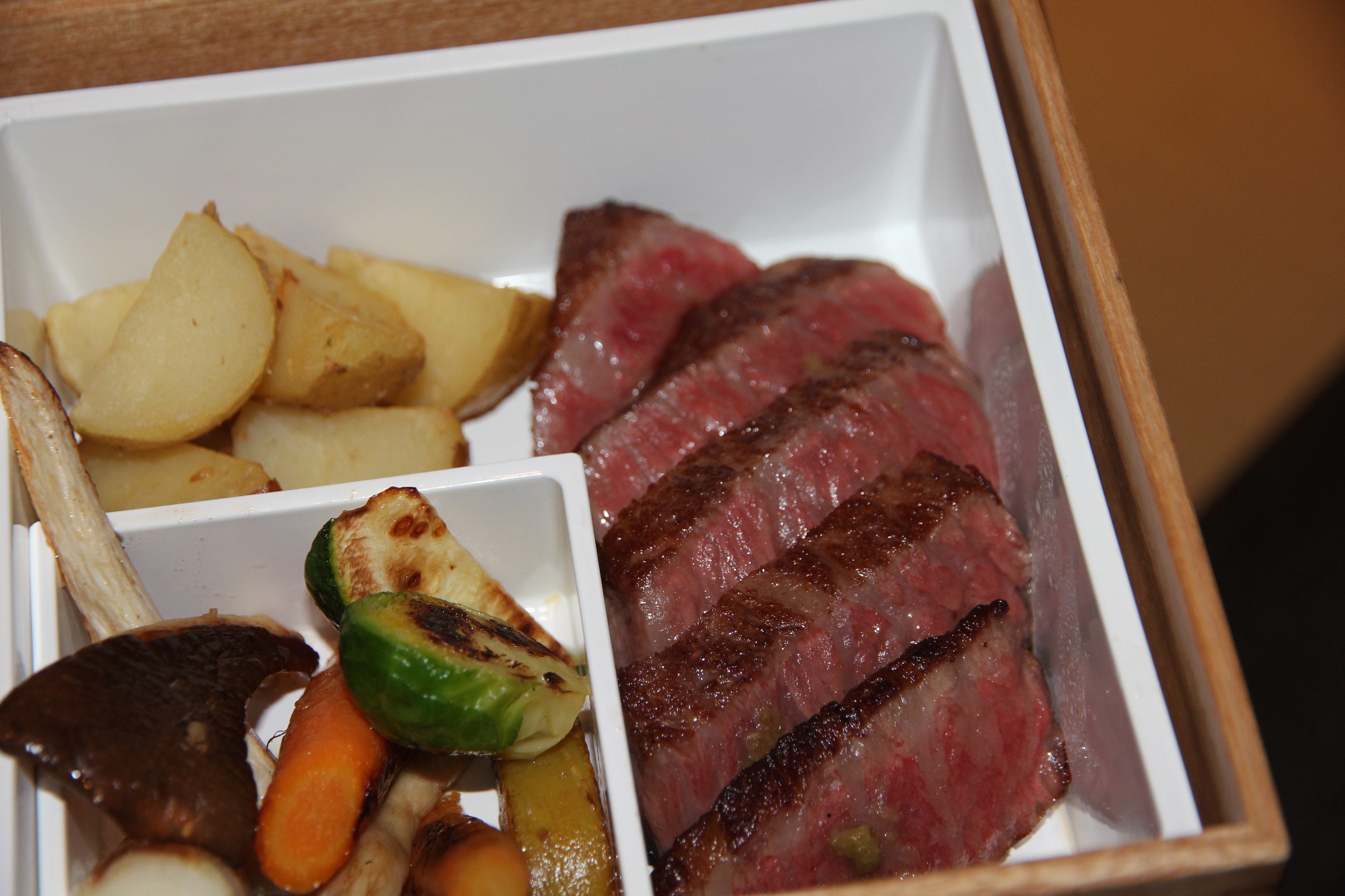 Am ersten Abend habe ich auf dem Zimmer eine traditionelle Bento-Box bekommen. Diese besteht aus vielen verschiedenen Gerichten. Neben Geflügel und Salat war das Menü recht fleischlastig. Für mich war es aber perfekt. Das Pferdefleisch-Tatar war ein Traum und auch das Rind war wirklich perfekt. Dank des hohen Fettanteils ist es sprichwörtlich auf der Zunge zergangen. Als Dessert gab es noch eine Creme Brullée, sowie einen kleinen Obstsalat.
