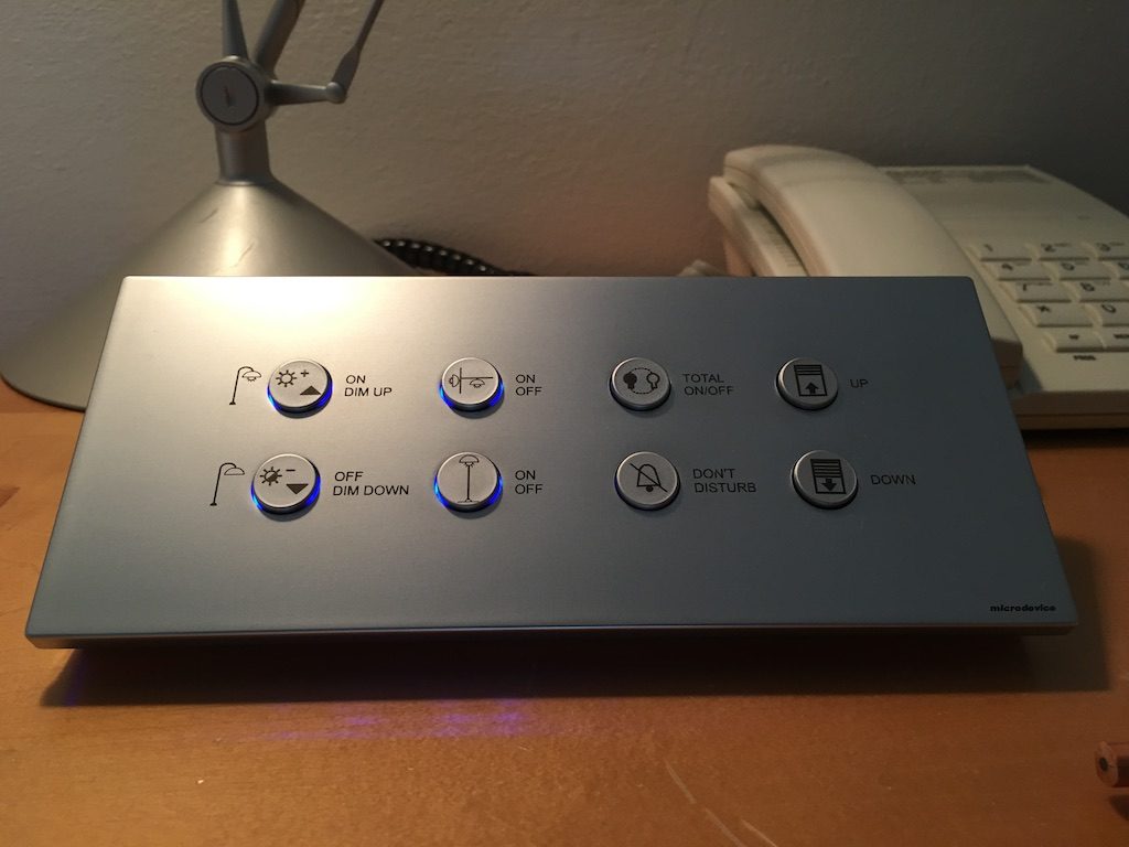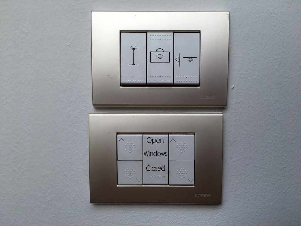 Die zahlreichen Lichtquellen, aber auch gut verdunkelnde Vorhänge ließen sich an mehreren Stellen im Zimmer einfach elektronisch bedienen – hierzu waren die Schalter mit kleinen Icons ausgestattet, sodass die verschiedenen Funktionen einfach erkennbar und nutzbar waren. Die Klimaanlage lies sich ähnlich simpel steuern und arbeitete ohne Probleme. Ein gigantisches Plus für mich, denn ich hasse nichts mehr, als Lichtschalter-Roulette spielen zu müssen um am Ende doch händisch einige Lampen aus den Steckdosen ziehen zu müssen.