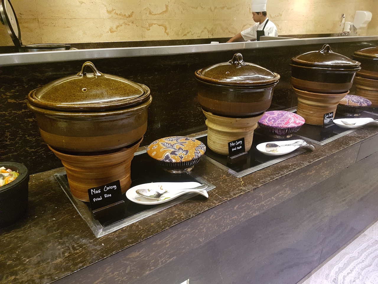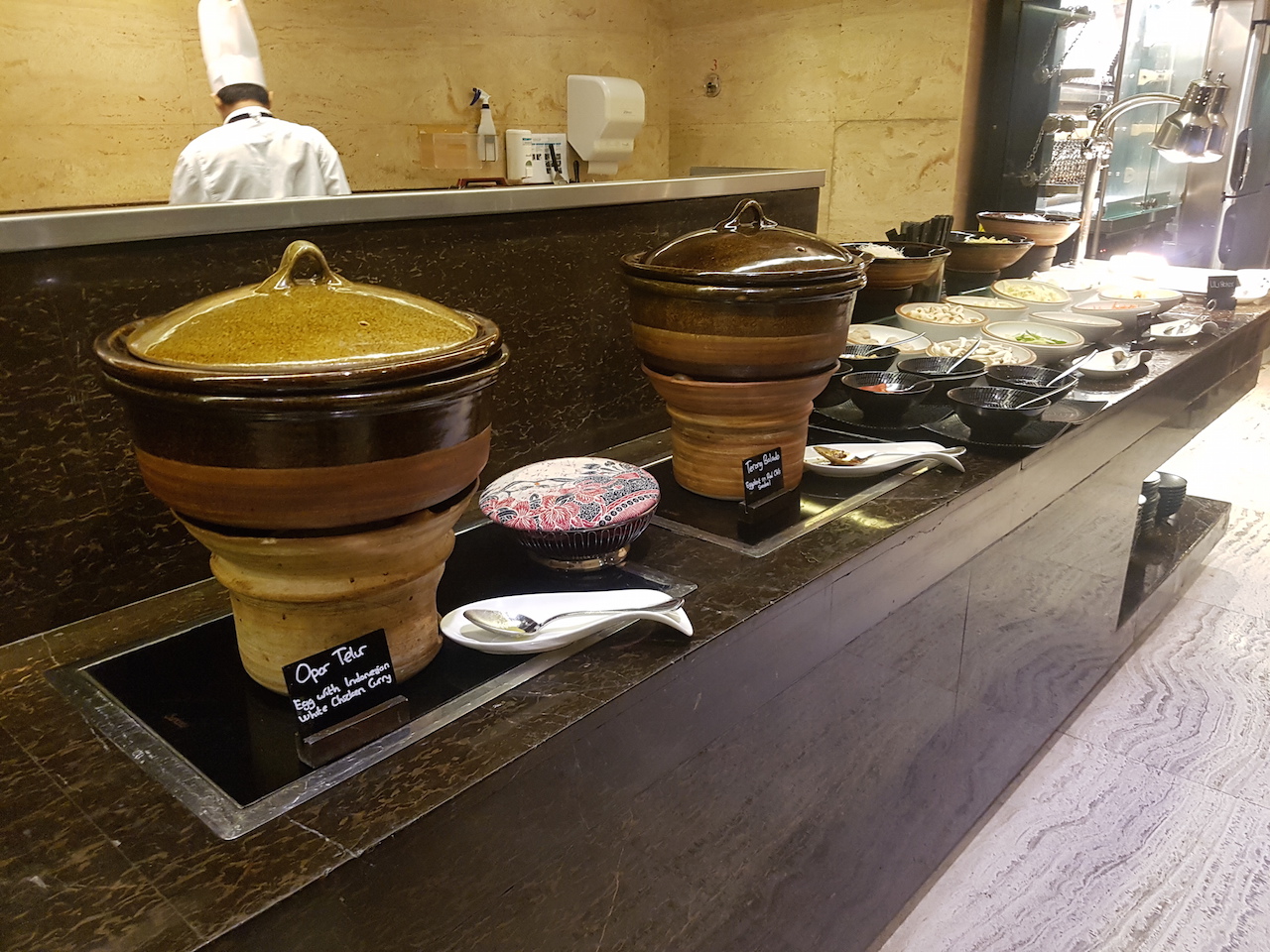Am Morgen ist die Auswahl in der Clublounge größer, als in so manch anderem Hotel. Neben kalten Speisen wie Brot, Brötchen und süßen Teilen gibt es auch warme westliche und asiatische Gerichte.