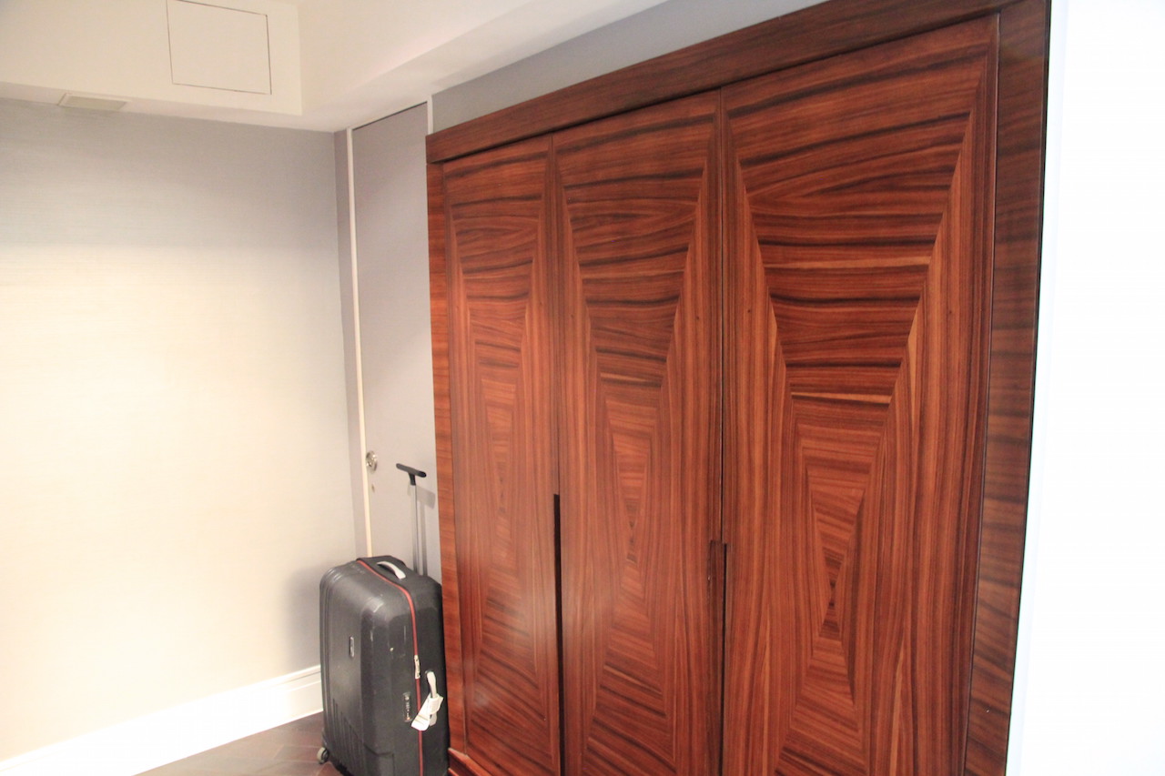 Das Deluxe Zimmer im Hotel Indonesia Kempinski Jakarta muss eine der größten „nicht-Suiten“ sein, die ich je bewohnt habe. Neben einem großen Zimmer gibt es ein nahezu gleich großes Bad. Doch der Reihe nach. Man betritt das Zimmer und steht zunächst in einem kleinen Flur. Hier befinden sich die Schränke.
