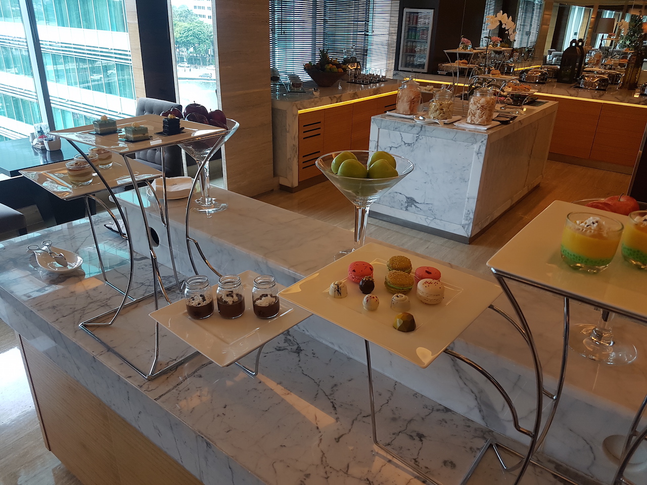 Während meines Aufenthaltes habe ich das Glück gehabt, die Club-Lounge zu besuchen. Hier wird am Morgen das Frühstück serviert. Zudem gibt es mittags auch einen Kaffee und Tee-Service. Am Abend findet hier die Happy Hour statt. Dazu gibt es eine super Auswahl an Canapées. Wenn man etwas mehr Hunger hat, dann kann man sich bei den warmen und kalten Speisen bedienen. Nachdem ich das Glück hatte, viele verschiedene Club Lounges zu sehen, muss ich sagen, dass die Auswahl hier extrem großzügig und qualitätiv hochwertig ist.
