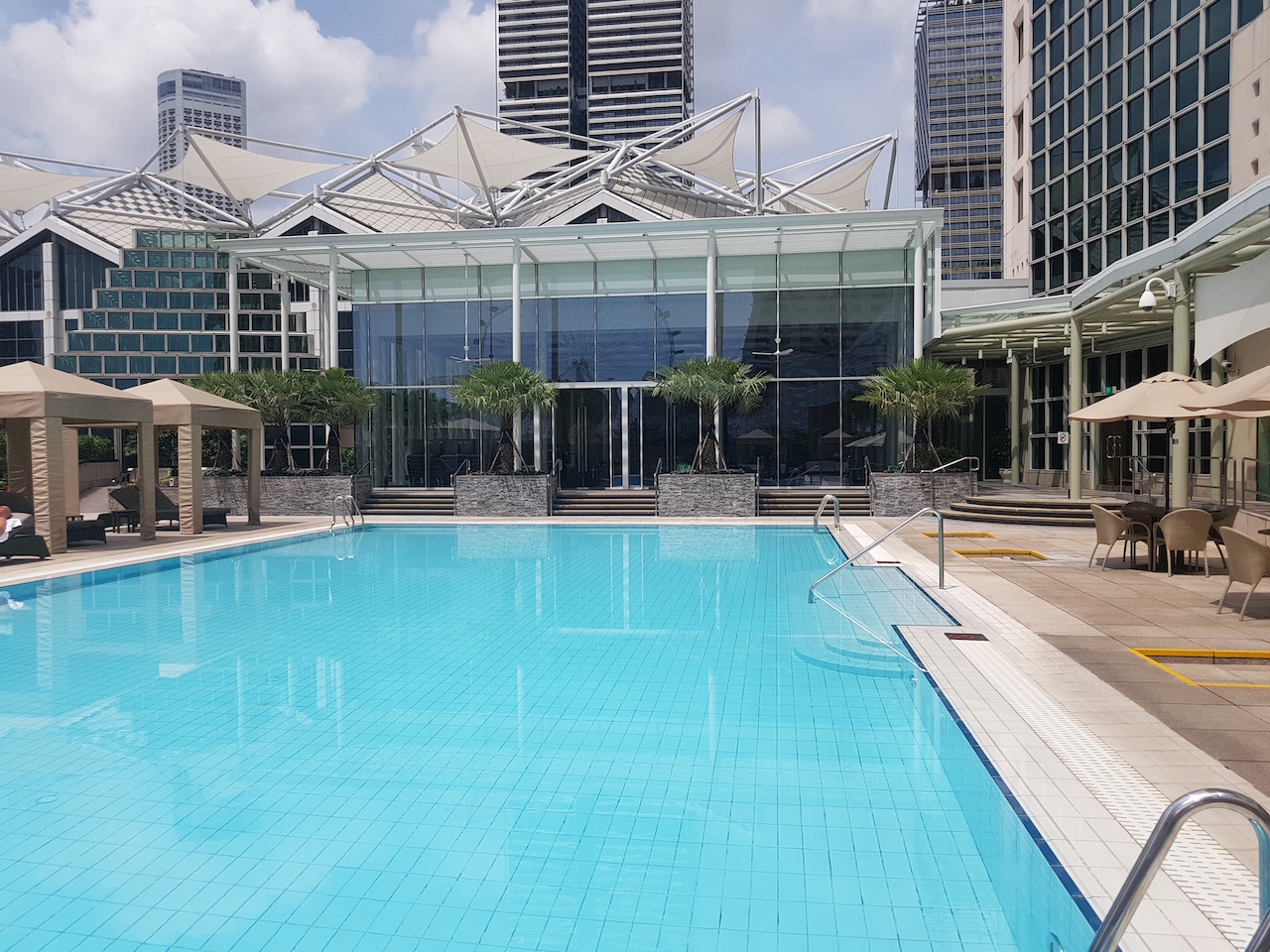 Im vierten Stock befindet sich auch noch der große Aussenpool. Hier gibt es neben Liegen auch noch zwei Cabanas in denen man sich entspannen kann.