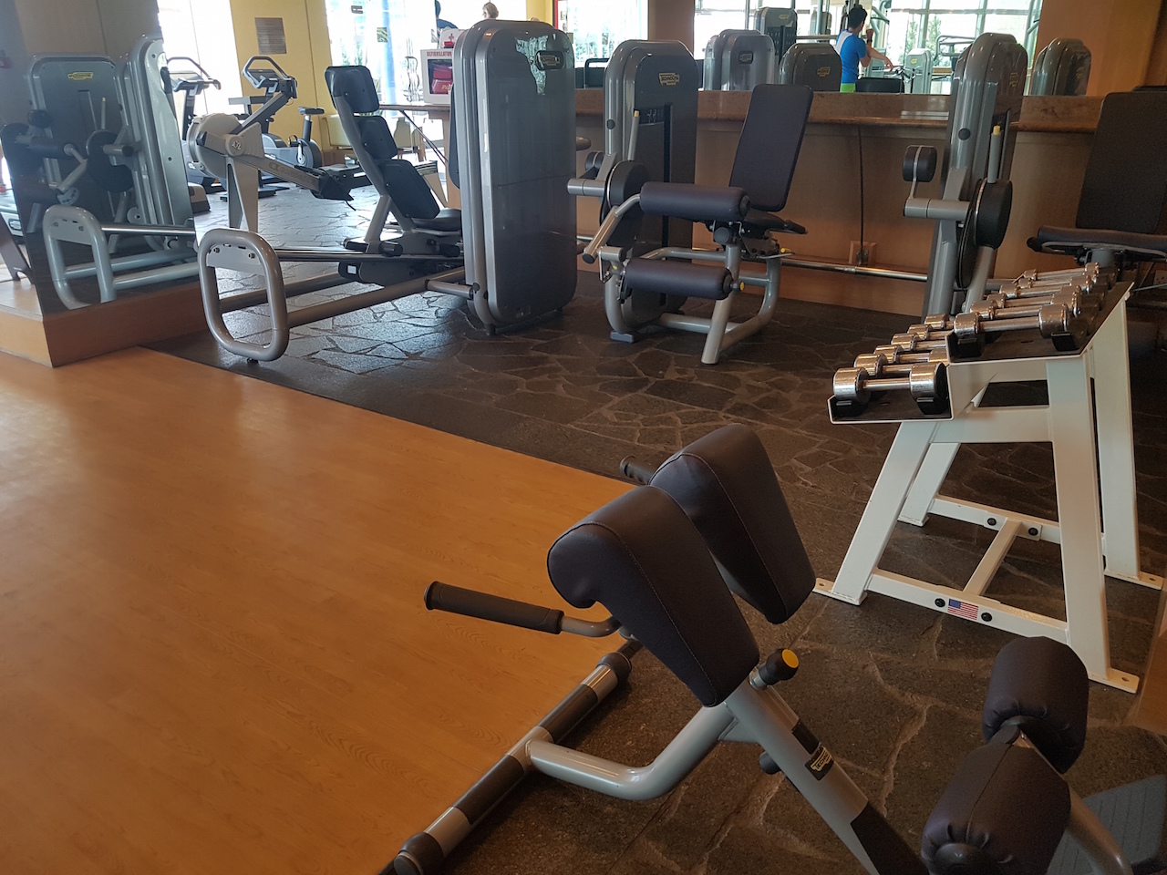 Außerdem befindet sich neben dem Pool noch das Fitnessstudio. Dieses ist mit guten Maschinen, freien Gewichten und Cardiogeräten ausgestattet.