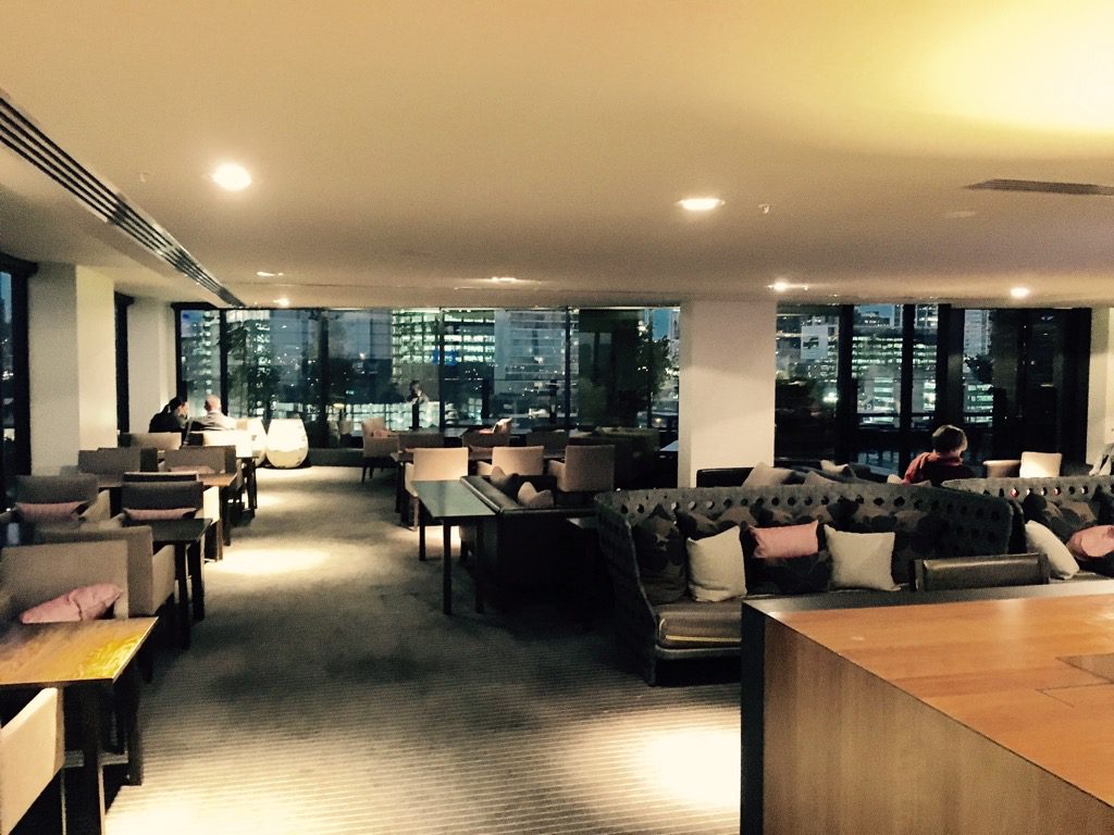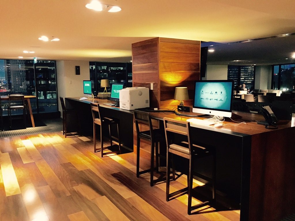 Die Executive Lounge im Hilton Melbourne ist erstaunlich groß. Wie das gesamte Hotel findet man auch hier die Holztöne wieder. Neben einer Vielzahl an Sitzgelegenheiten, gibt es in der Executive Lounge eine Terrasse, sowie ein kleines Business Center.