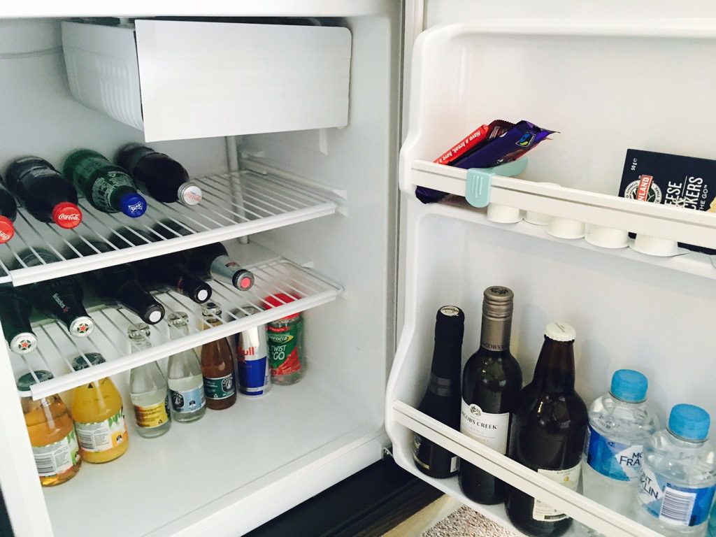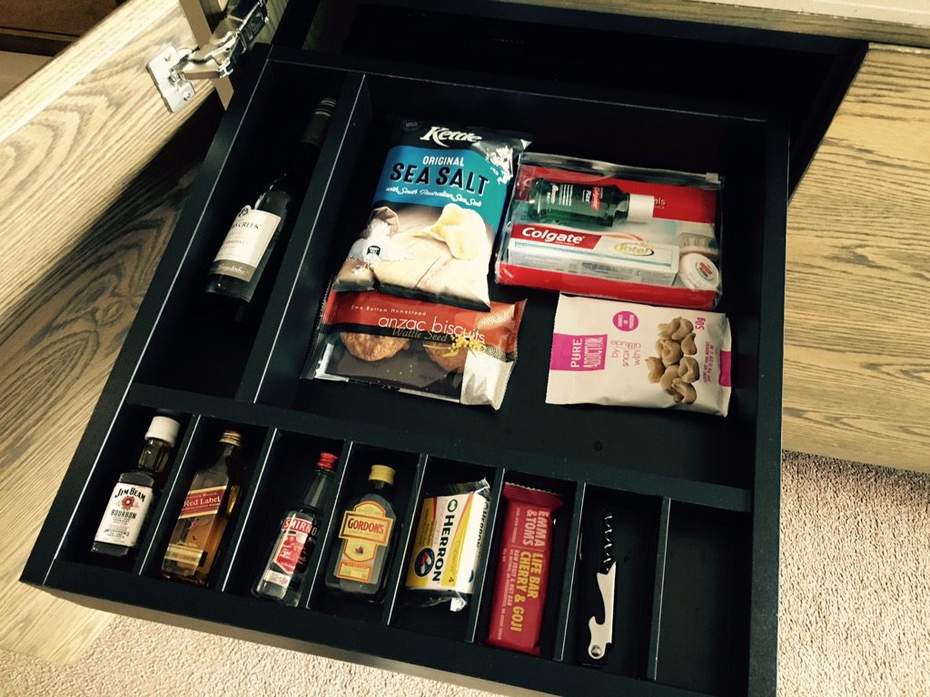 Natürlich findet man auch eine Minibar in den Zimmern des Hilton Melbourne.