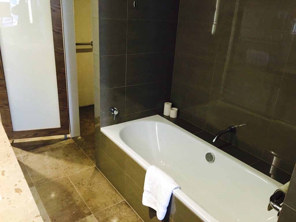 Das Badezimmer hatte eine angenehme Größe und verfügte neben einer separaten Dusche und WC auch über eine große Badewanne. Wie in allen Hilton Hotels weltweit finden sich auch im Badezimmer des Hilton Melbourne Amenitys von Peter Thomas Roth.
