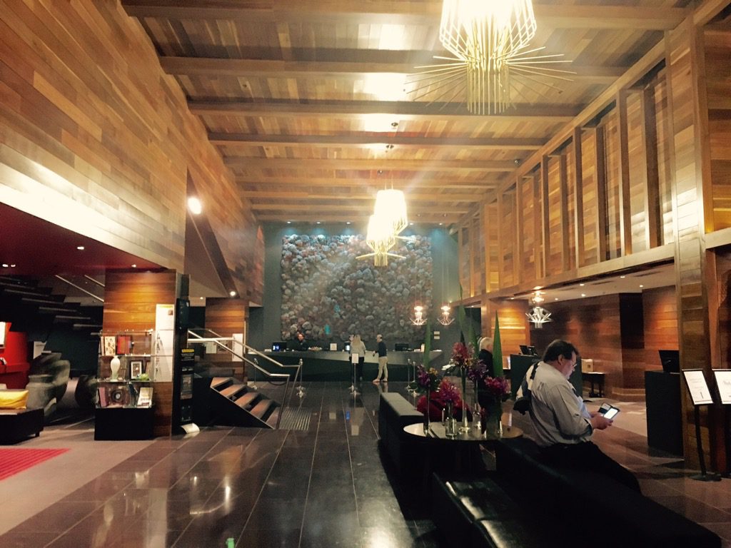 Ich bin recht früh am morgen im Hilton Melbourne angekommen. Die Lobby war, wie auch das gesamte Hotel von innen mit Holz ausgekleidet. Damit wirkte sie auf mich sehr warm, allerdings nicht so wie die typische Lobby eines Hiltons. Dies sehe ich allerdings nicht als negativ an.