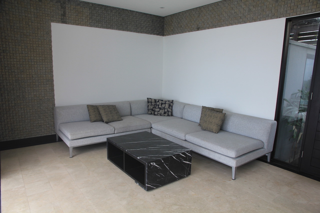 Auf der gegenüberliegenden Seit befand sich ein Outdoor- Wohnzimmer. Hier haben wir gerne unseren Abend verbracht. Neben einer kleinen Küche mit Minibar gab es eine große L-Förmige Couch mit Beistelltisch.