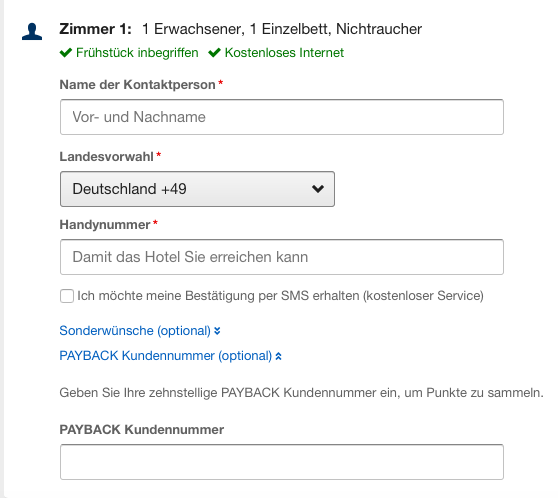 Die Payback Kartennummer müsst Ihr bei der Angabe der persönlichen Daten in die Buchung eintragen um Payback Punkte zu erhalten.