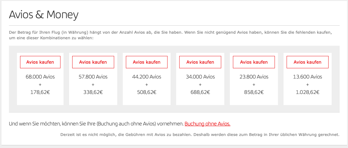 Wer allerdings sofort buchen will, der kann auch einfach die fehlenden Avios im Buchungsprozess zukaufen. So kostet ein Hin- und Rückflug in der Business Class z.B. auch 34.000 Avios und 688,62 Euro. Zwar lassen sich die Avios günstiger generieren, wenn man dies über die AMEX macht, aber wenn man den Prozess abkürzen will ist dies eine gute Option.