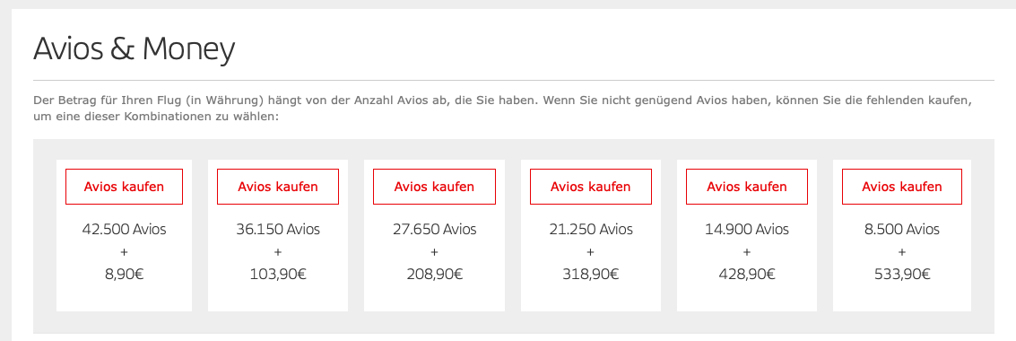 Hierbei entsprechen 42.500 Avios 53.125 Membership Rewards Punkten, welche sich aus eigener Erfahrung nur durch Beantragung der Amex Gold Karte sehr schnell sammeln lassen. Allerdings kann man auch hier wieder durch eine höhere Zuzahlung die Anzahl der Avios senken.