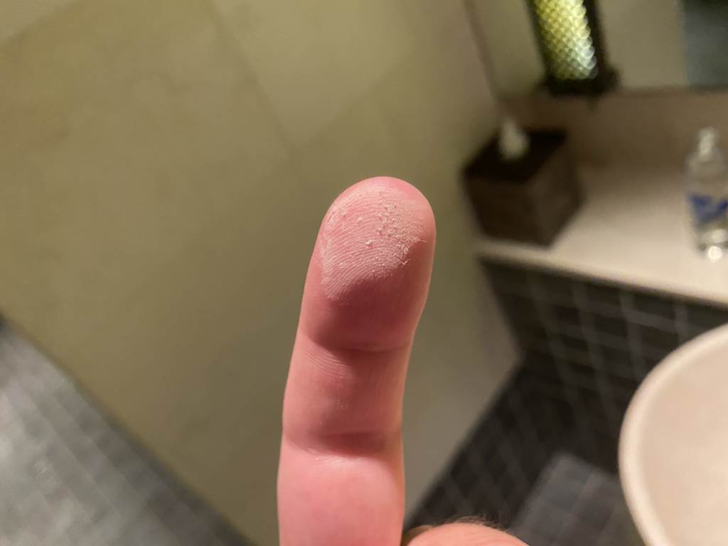 Es war dann mittlerweile Zeit, die neue Suite zu beziehen. Zwischenzeitlich hatten wir erfahren, dass derzeit nur 40 Zimmer überhaupt genutzt werden können und der Rest noch renoviert wird. Das erklärte die Herausforderungen ein passendes Zimmer für uns zu finden. Es erklärte jedoch nicht, warum sich dann doch auch deutliche Mängel an unserer Suite wiederfanden. Nicht nur, dass es nicht sauber war. Denn meine Frau musste die Brüstung an der Terrasse erstmal mit einem nassen Handtuch putzen und ich hatte mit Griff an die falsche Stelle im Schrank eine dicke Staubschicht auf dem Finger. Nein, es wirkt auch an anderen Stellen nicht wirklich renoviert. So hing der Duschkopf schief und das Rohr war mit Klebeband geflickt.