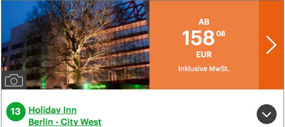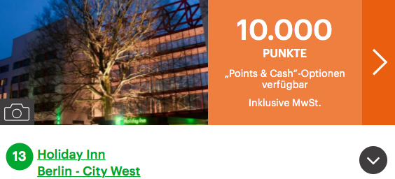 Auf der IHG Website könnt Ihr die Option „Rewards Night“ auswählen. Wenn Ihr dies anklickt, dann bekommt Ihr nur Hotels angezeigt, die man auch mit Punkten buchen kann. Wie sehr es sich lohnen kann, zeigt folgendes Beispiel: Ich durfte vor kurzem in Berlin an einer Veranstaltung teilnehmen. Das Holiday Inn hätte mich mindestens 158 Euro pro Nacht gekostet, mit Punkten habe ich das Hotel bereits ab 44,27 Euro pro Nacht buchen können. Somit habe ich über zwei Drittel des Preises gespart.