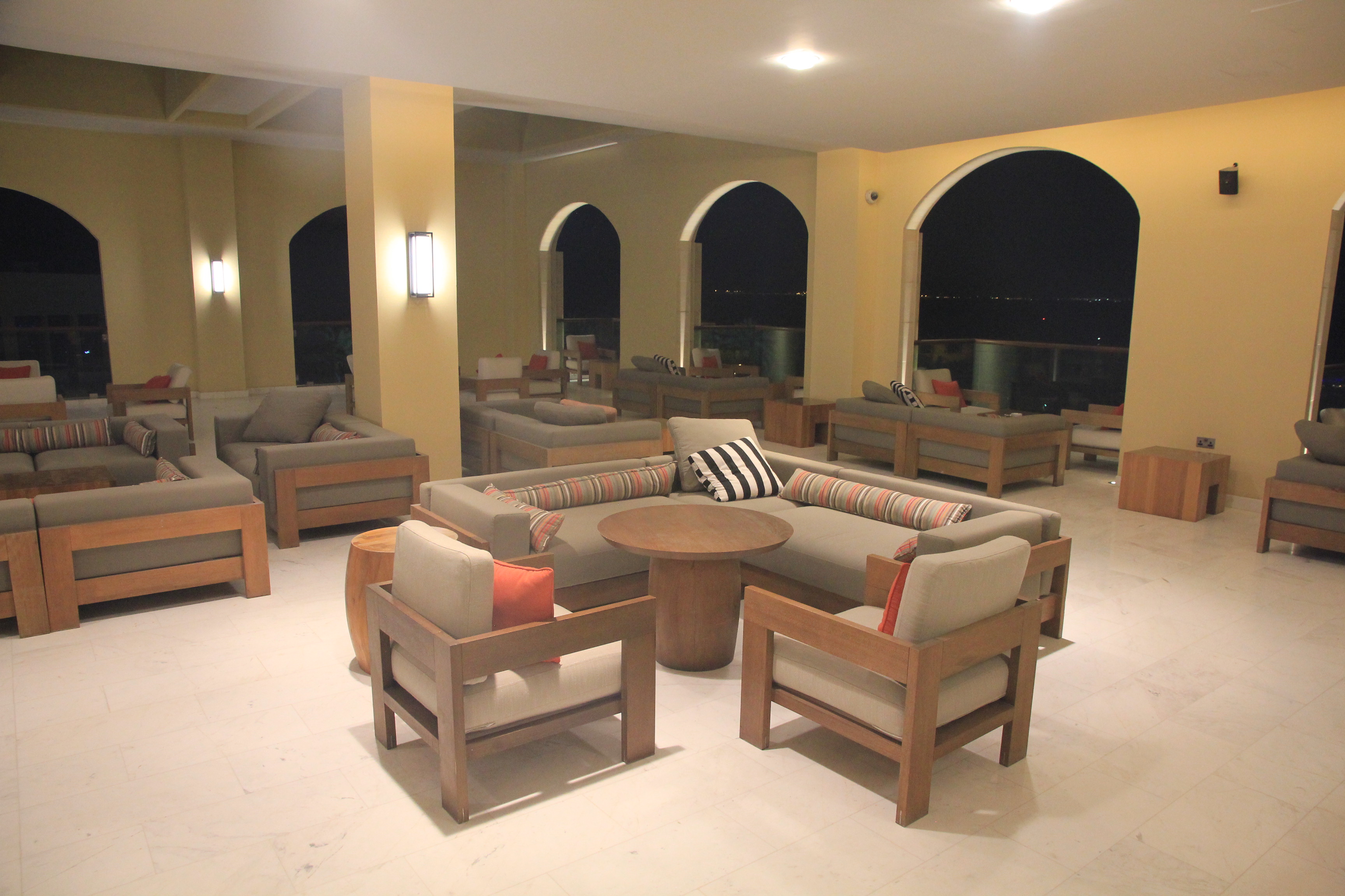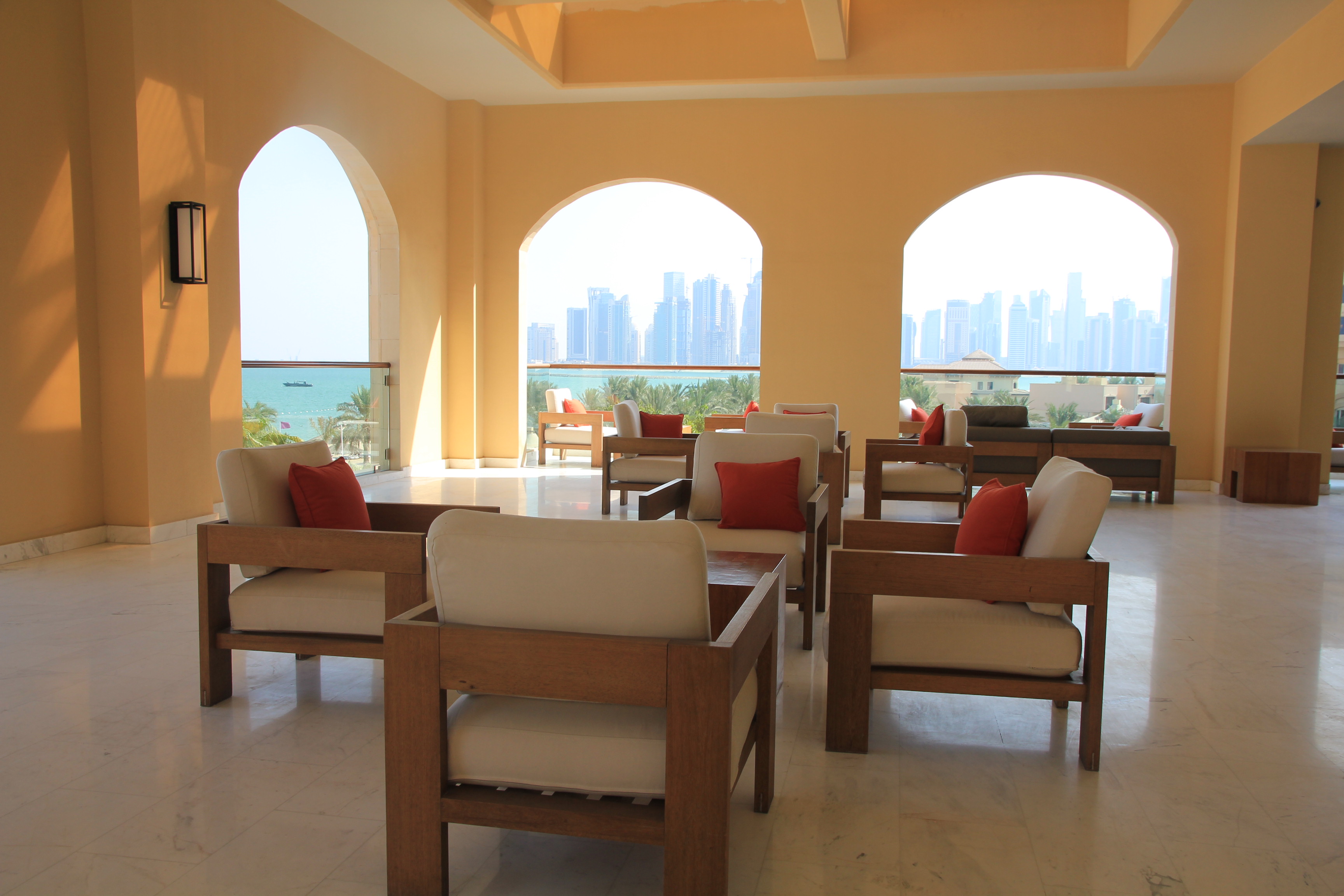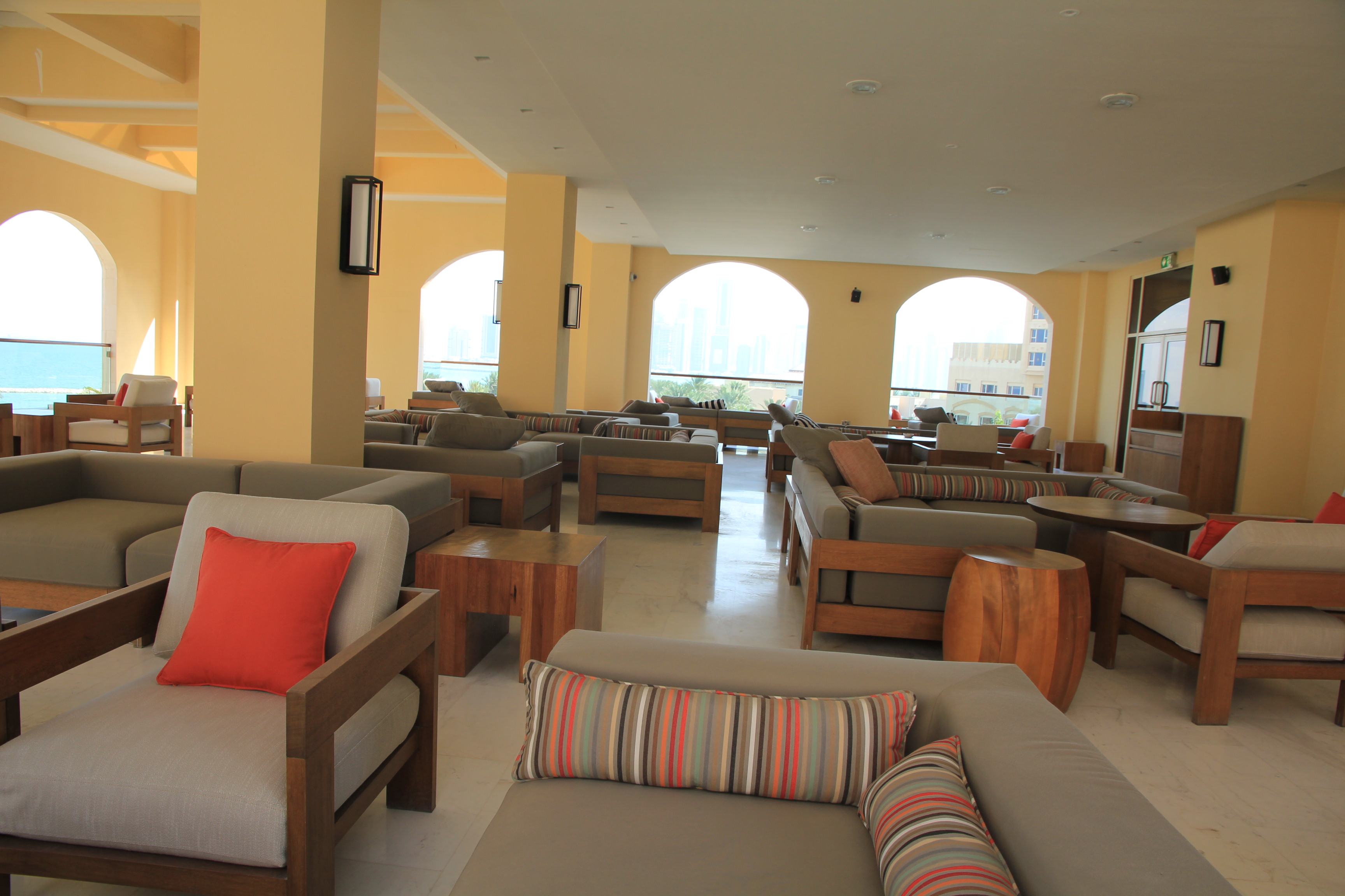 Die Clublounge verfügt auch über eine große Terrasse. Von hier lässt sich hervorragend die Skyline und der Gartenbereich des InterContinental Doha beobachten, während man einen Drink zu sich nimmt.