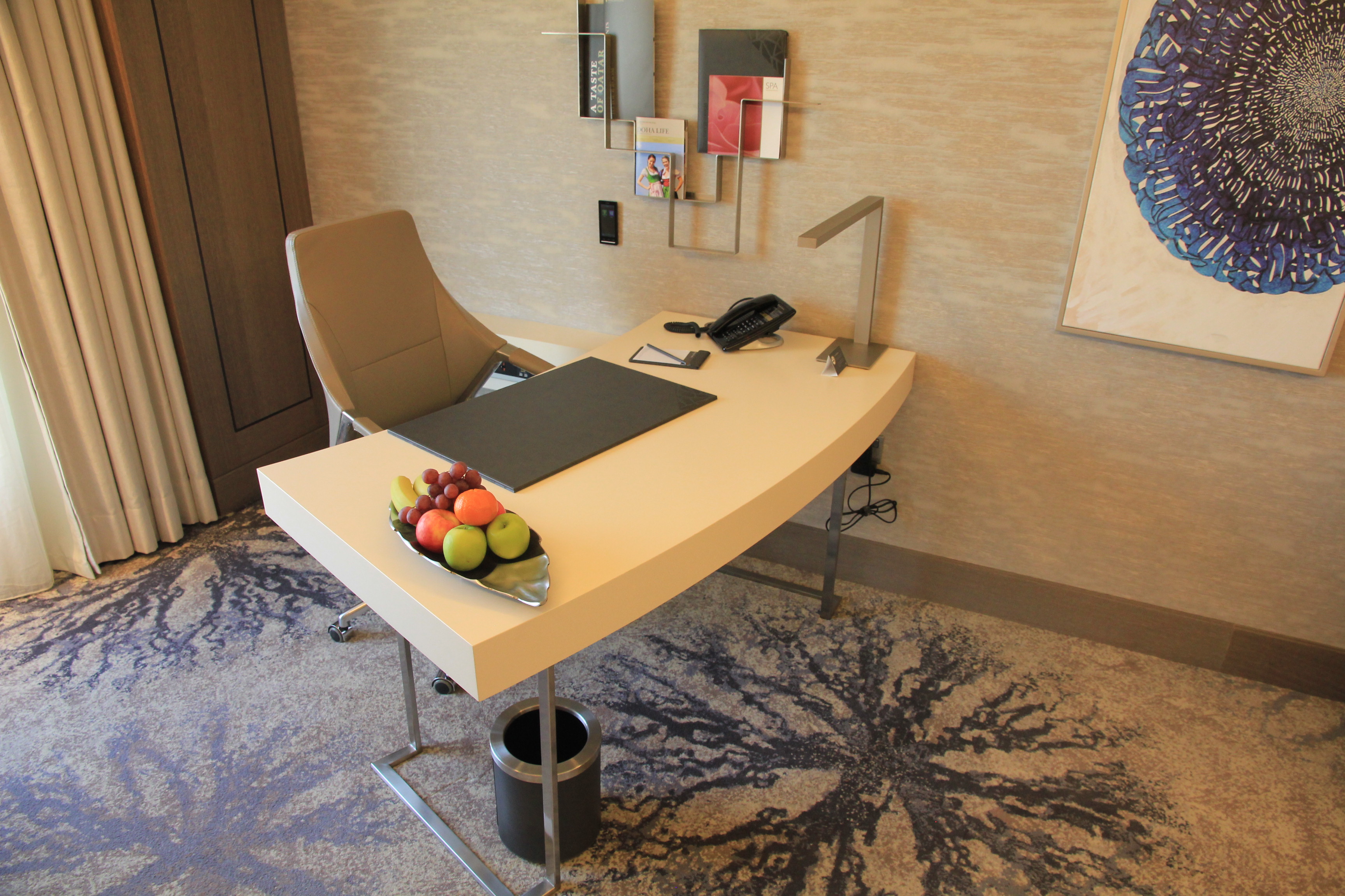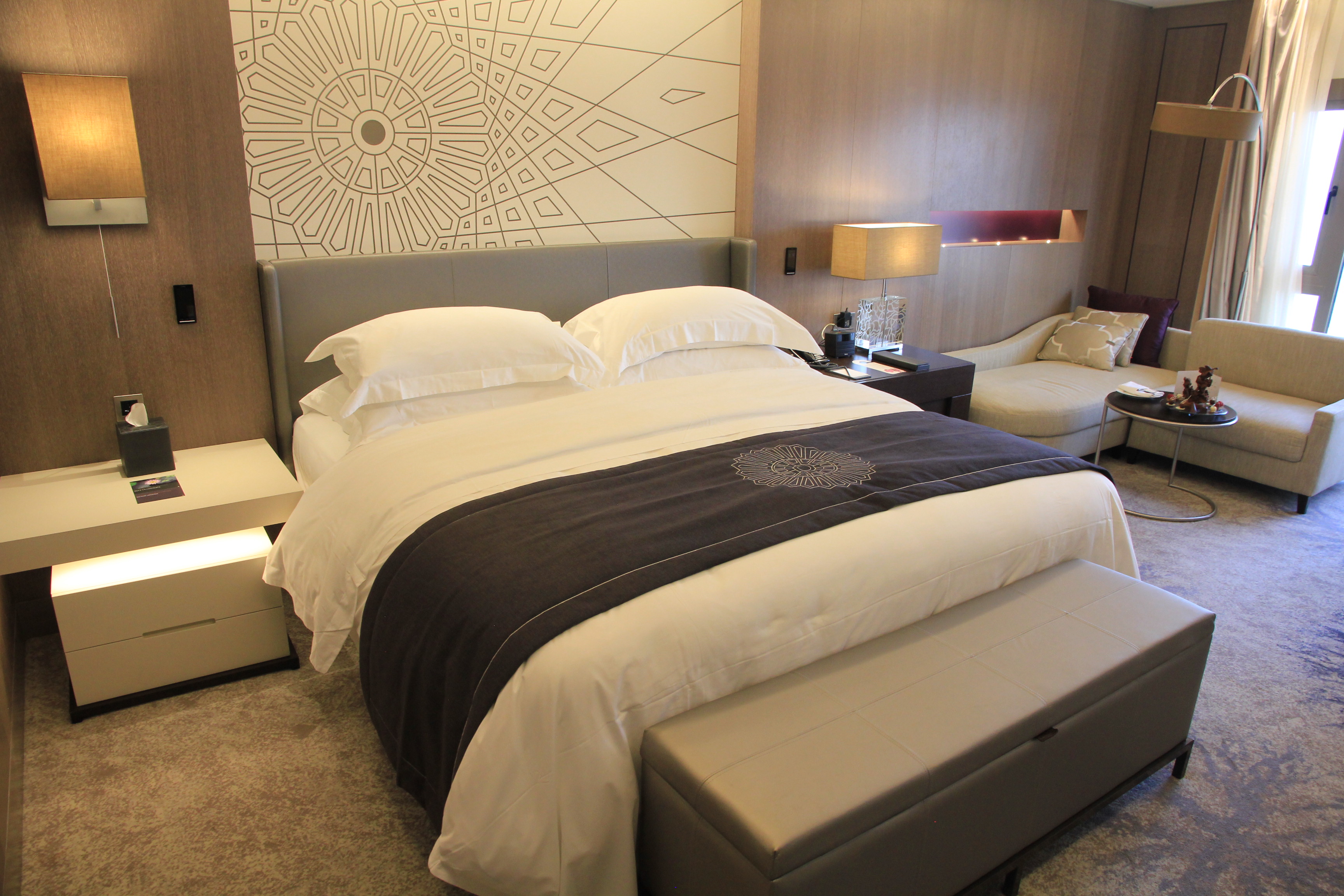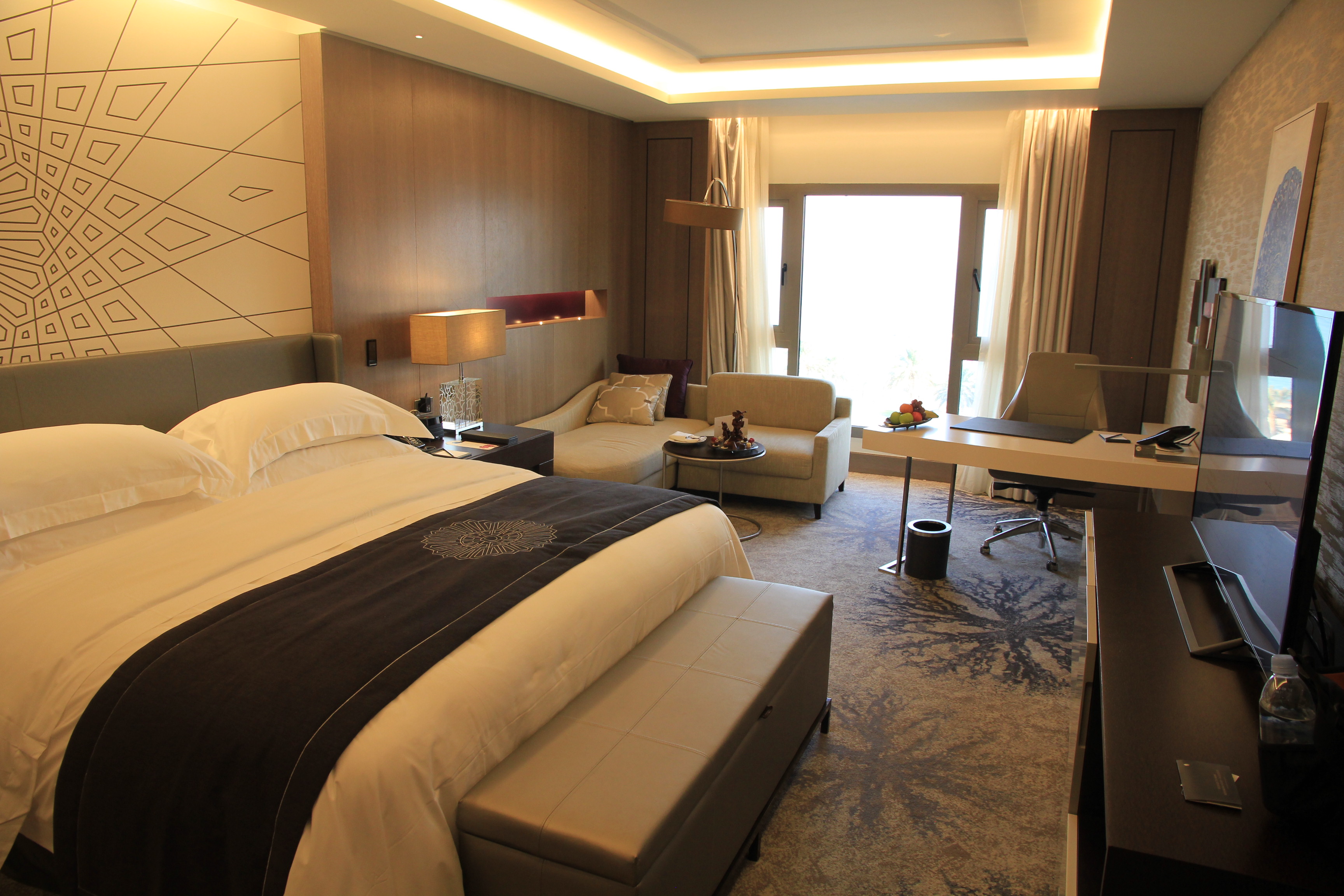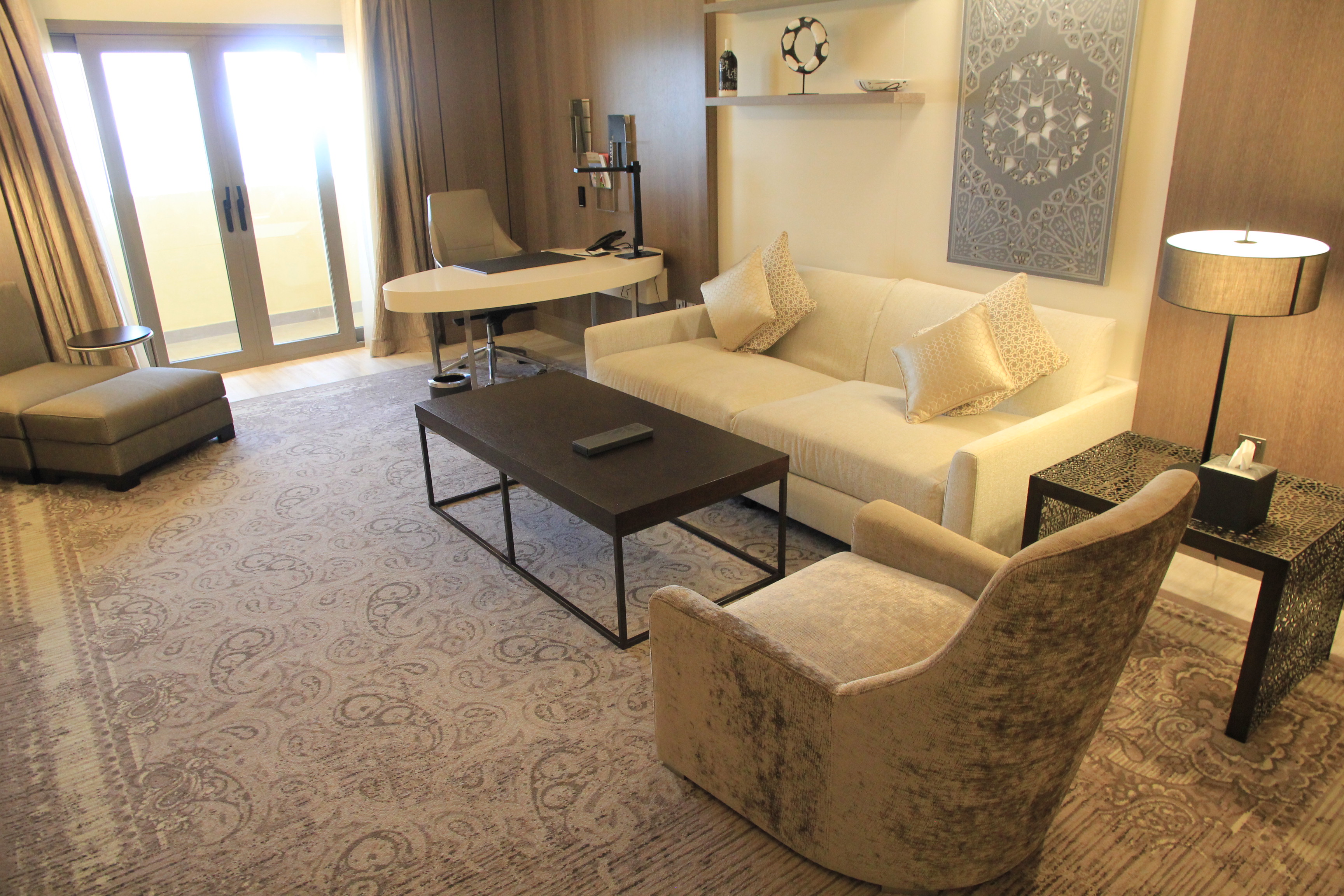 Mit den 40 Quadratmetern war das Zimmer recht groß und es gibt alles was man sich als Gast wünscht. Der moderne, wenngleich aber auch traditionelle Stil gefällt mir sehr gut. Alles ist in Sandtönen gehalten. Die Beleuchtung ist indirekt und wirkt sehr warm. Die meisten Funktionen des Zimmers kann man über einen zentralen Controller verstellen.