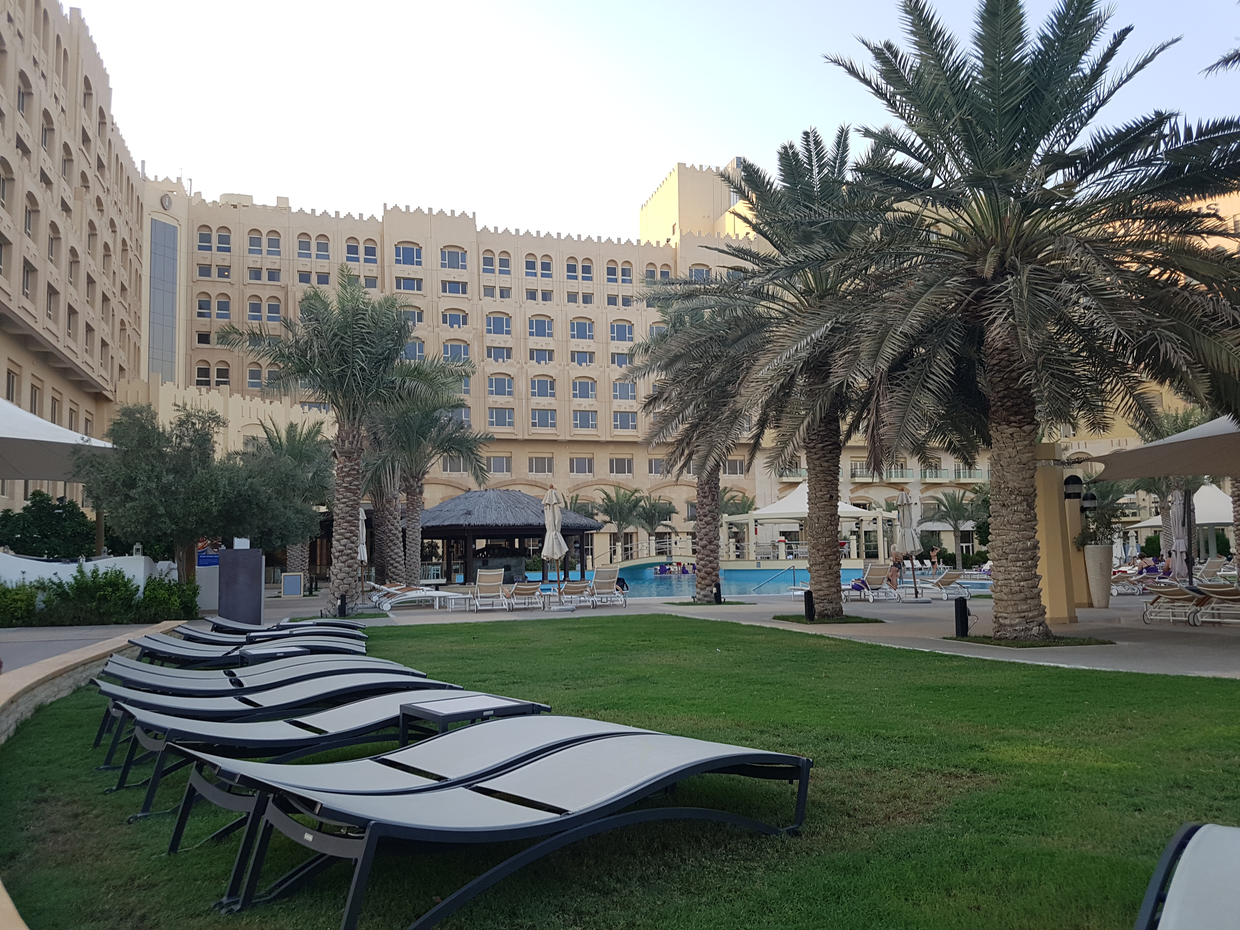 Die direkte Lage am Strand ist natürlich ein riesengroßes Argument für das InterContinental Doha. Der Außenbereich ist sehr großzügig gestaltet. Hier gibt es neben zwei großen Pools auch noch einen kleineren, überdachten, in dem Kinder plantschen können. Rund um den Pool gibt es viele Liegen. Trotzdem wirkt es nicht eng und zugestellt. Alles ist sehr weitläufig.