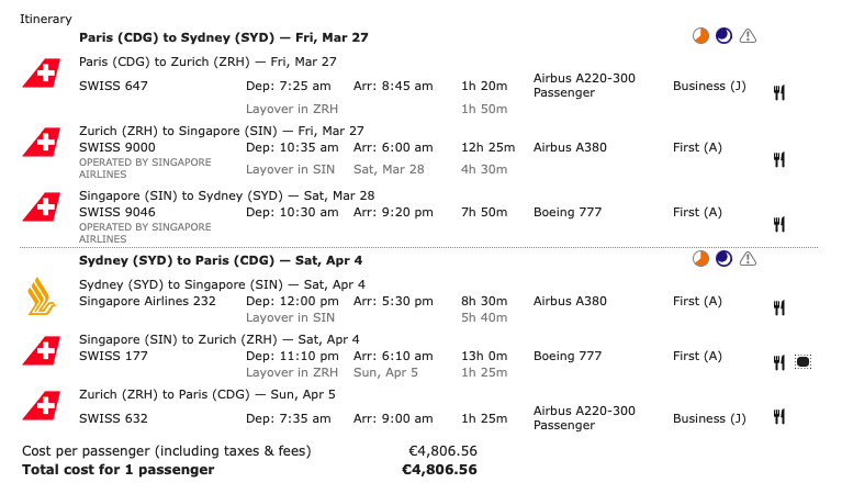 Aber diese First Class Angebote ab Paris nach Australien gehen noch weiter, denn sie ermöglichen es Euch, auf einer Reise in der Lufthansa, Swiss, Thai Airways, Singapore Airlines oder Qantas First Class zu fliegen.