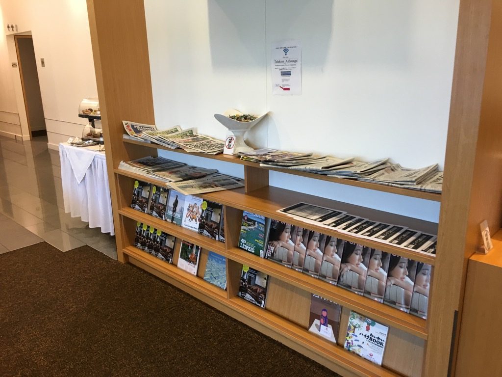 Natürlich ist auch eine übliche Auswahl an Tageszeitungen und Magazinen in der JAL Lounge verfügbar. Hier merkt man bei der Auswahl der Titel allerdings sehr stark, dass man in einer japanischen Lounge ist.