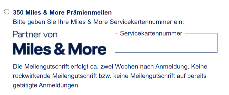 - Miles & More Servicekartennummer eintragen und Formular absenden