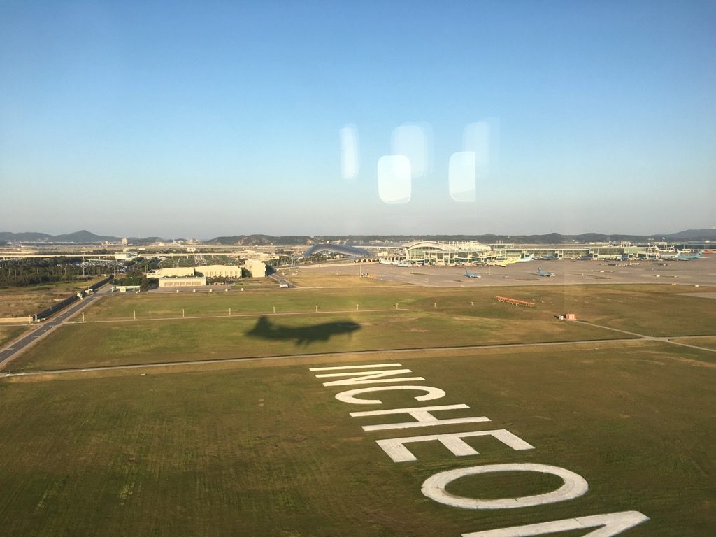 Nachdem ich mit meinem Frühstück fertig war, befanden wir uns auch schon im Landeanflug auf Seoul, wo wir bei wunderbarem Wetter gelandet sind.