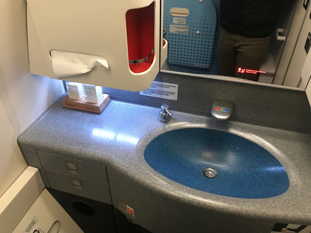 Die Waschräume machten einen sehr großen und modernen Eindruck. Hier werden in jeder Reiseklasse auch eine Handlotion und ein Erfrischungswasser angeboten.