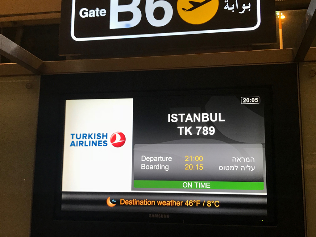 Das Boarding am Ben Gurion-Airport begann überpünktlich. Zunächst wurden die Gäste der Business Class sowie die Statuskunden mit Star Alliance Gold-Status bzw. einem Turkish Airlines Miles&Smiles-Status im Priority-Boarding zum Einsteigen gebeten.