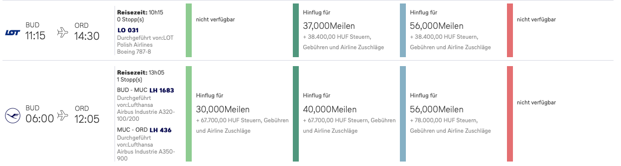 LOT ist zwar keine Lufthansa Group Airline, allerdings nutzt die Airline auch das Miles&More Programm als Vielfliegerprogramm und ist entsprechend eine vollintegrierte Miles&More Airline. Damit sammelt man bei LOT auch Status-, Select-, HON Circle- und Prämienmeilen. Zusätzlich kann man die Flüge von Budapest in die USA auch recht gut mit Miles&More Meilen buchen.