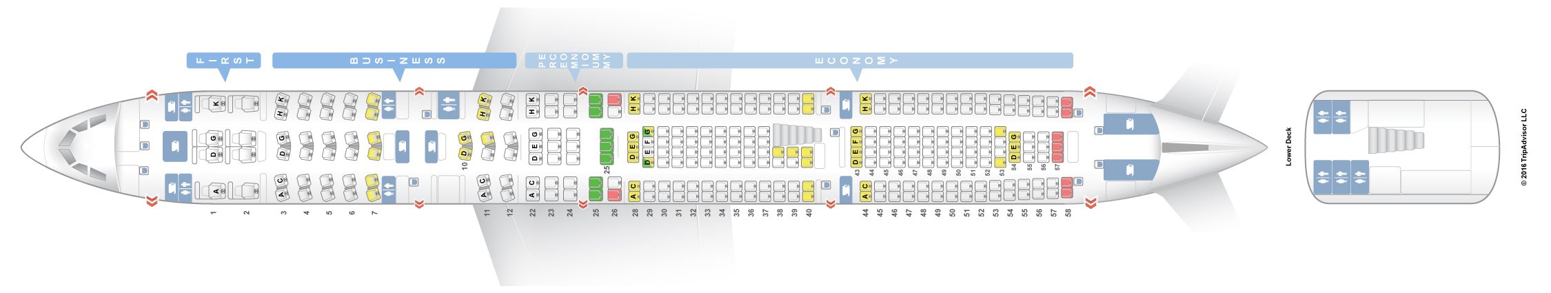 Passagiere der Economy Class fanden das untere Deck interessant, dort sind fünf Waschräume installiert. Eine gute Gelegenheit sich die Beine zu vertreten, außerdem wurden weniger Fluggäste von Geräuschen und Gerüchen aus nächster Nähe belästigt. Die Größe der Klasse wurde nach Bedarf verändert, die Business Class konnte um zwei Reihen verkleinert bzw. vergrößert werden.
