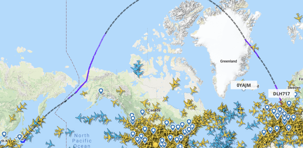 Durch das hohe Gewicht können die Flugzeuge nicht mehr voll mit Passagieren und Fracht ausgelastet werden, die Besatzungen kommen durch die langen Dienstzeiten ans Limit. Lufthansa hat sich daher jetzt etwas einfallen lassen und am Freitag die Route von Haneda nach Frankfurt in die andere Richtung abgeändert. Diese führte über Alaska und den Norden Kanadas sowie Grönland nach Deutschland.